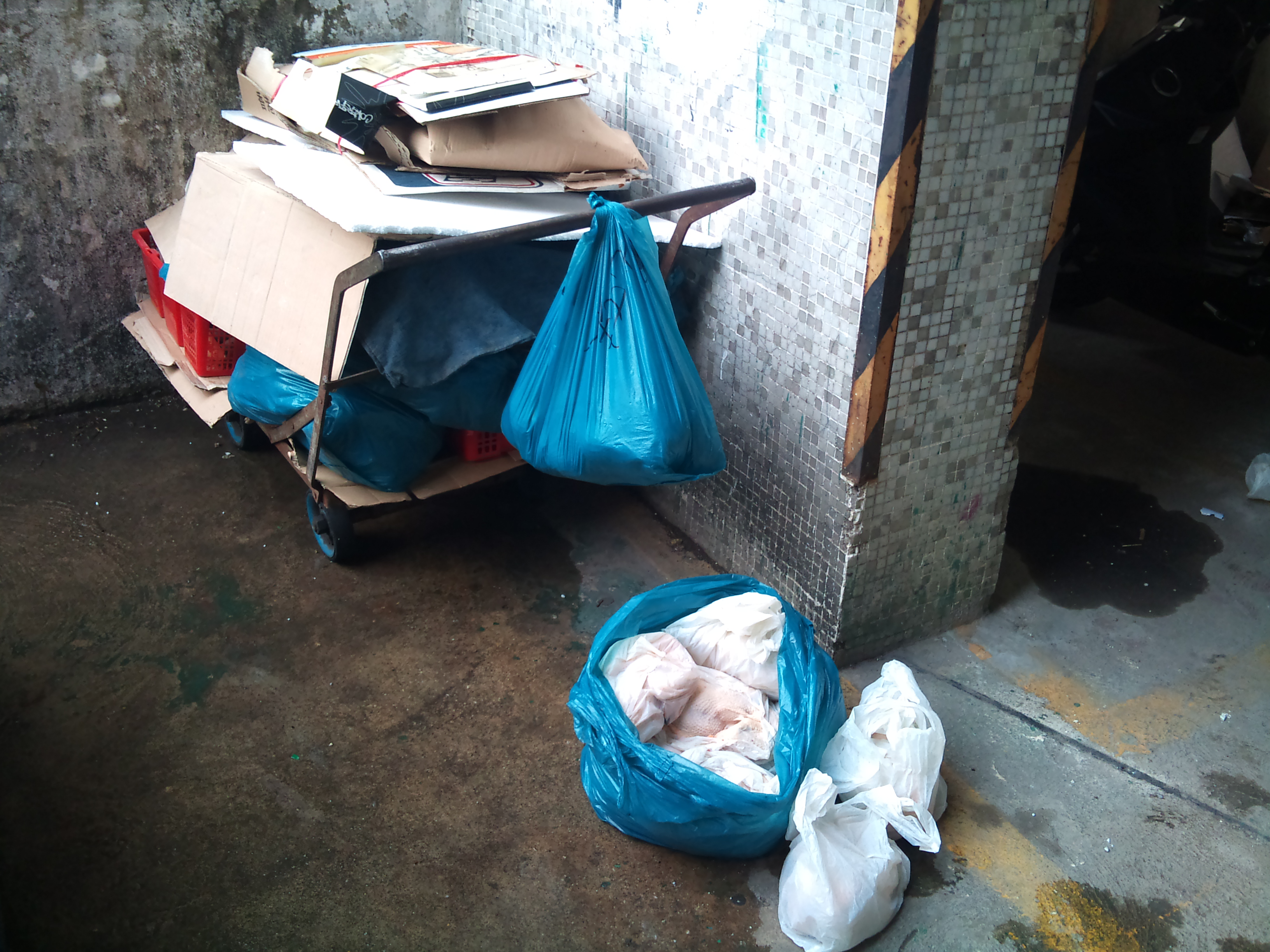 於今天早上,海關人員發現部份回澳水客將從內地帶回本澳的物品放於上述地點後便離開。其後,一名本澳女子走近並將有關物品進行整理後準備離開時﹐被海關人員截停,並發現該批被運走之物品為一些未經檢疫的已宰鮮雞。調查期間,該名本澳女子聲稱,該批未經檢疫的已宰鮮雞是其今天在拱北市場購買,並已每隻3元的帶功費交由水客帶回本澳。在台山新城市花園平台收回後,在附近一帶作非法擺賣。。