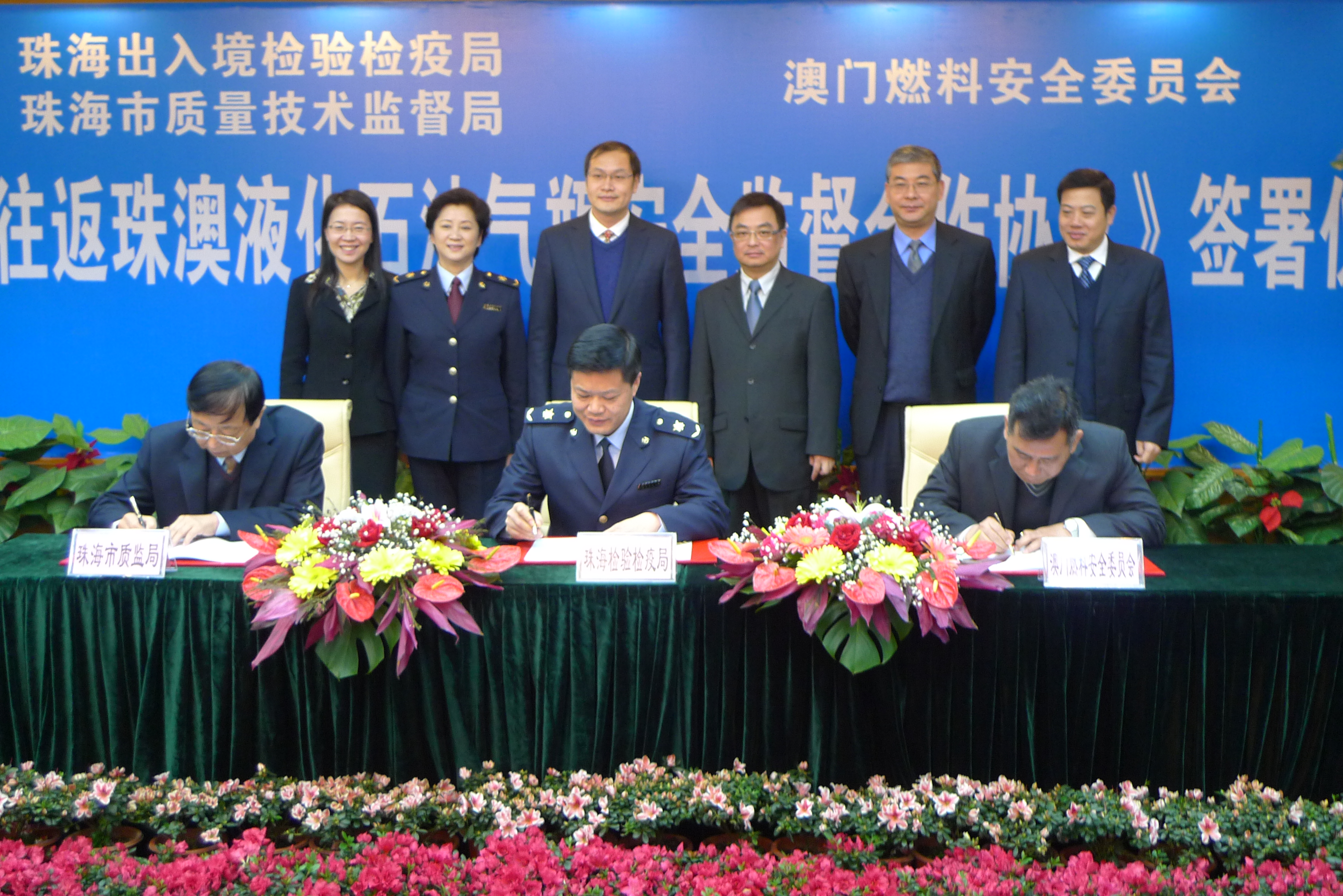 該簽署儀式在國家質檢總局檢驗司副司長劉世遠、珠海市人民政府副秘書長龍廣艷及澳門特別行政區運輸工務司司長辦公室主任黃振東等領導的見證下,由燃料安全委員會主席鄺錦成、珠海出入境檢驗檢疫局副局長何宏愷,以及珠海市質量技術監督局調研員張征代表三方在協議書上簽字。