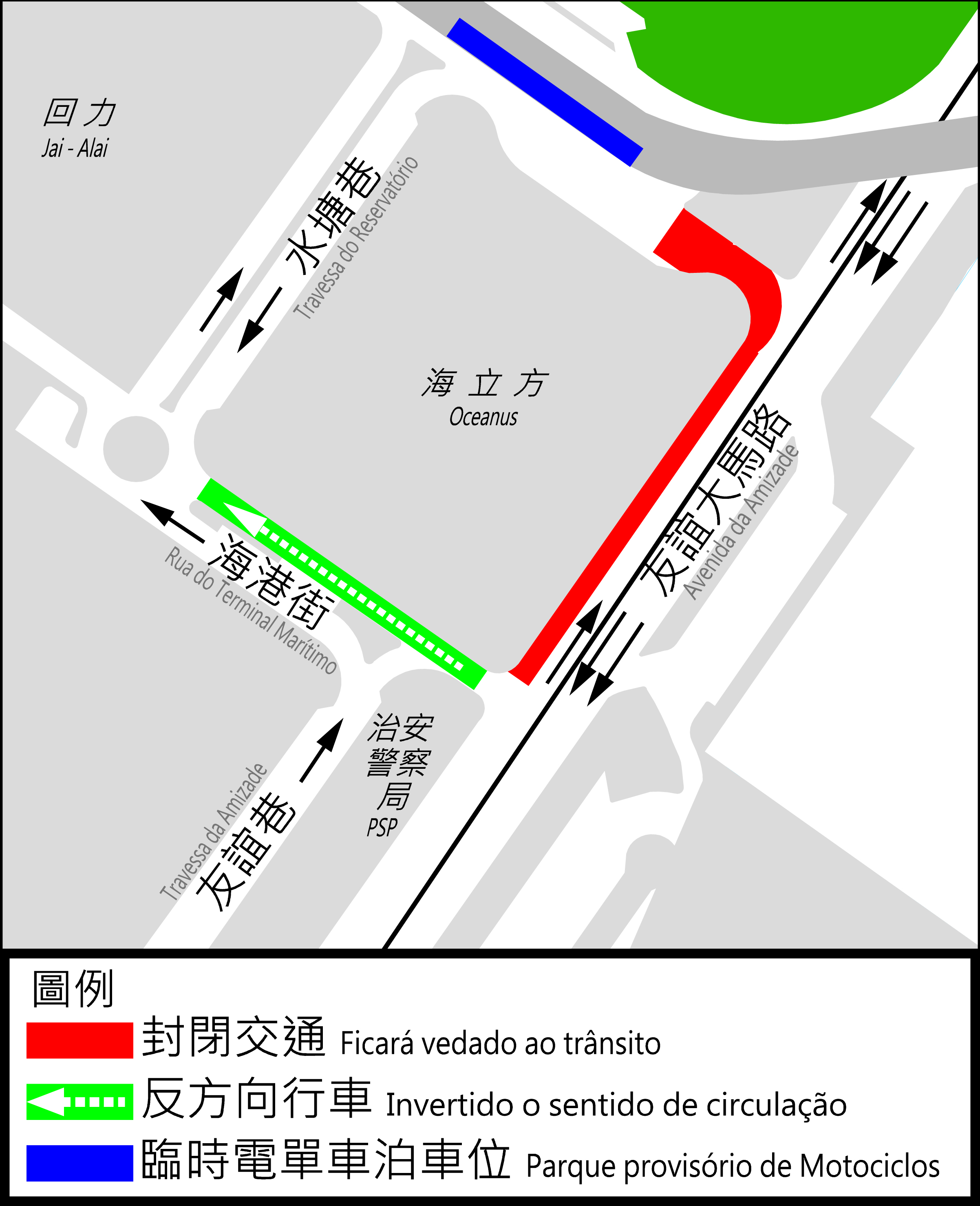 為改善新口岸區污水泵房渠管的淤塞狀況,加強排污能力,民政總署即將開展“高美士街至EP7污水泵房之渠網改善工程”。配合工程施工,位於友誼大馬路近羅理基博士大馬路路口,將於周日(27日)上午10時起臨時封閉,期間,車輛不能由友誼大馬路左轉入羅理基博士大馬路,但介乎友誼大馬路與水塘巷的一段海港街將臨時改作反方向行車,車輛可以由友誼大馬路左轉入海港街前往羅理基博士大馬路一帶。與此同時,介乎羅理基博士大馬路與海港街之間的一段友誼大馬路需要實施有限度通車,而海港街中間分隔島之電單車泊位及近友誼大馬路天橋底之電單車停泊區亦會暫時取消,交通事務局將把羅理基博士大馬路的部分咪錶車位臨時改作電單車泊位。