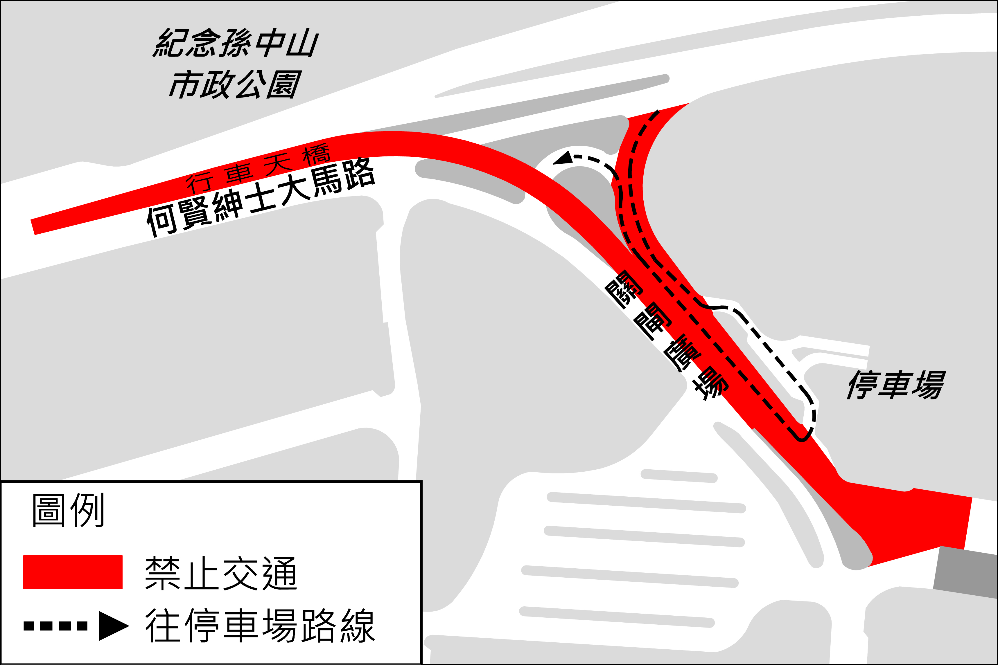 因安裝升降機工程,何賢紳士大馬路行車天橋及關閘廣場近澳門工會聯合總會工人體育館的路段將於周日(20日)凌晨0時30分至早上6時期間封閉,交通事務局呼籲駕駛者留意有關改動。