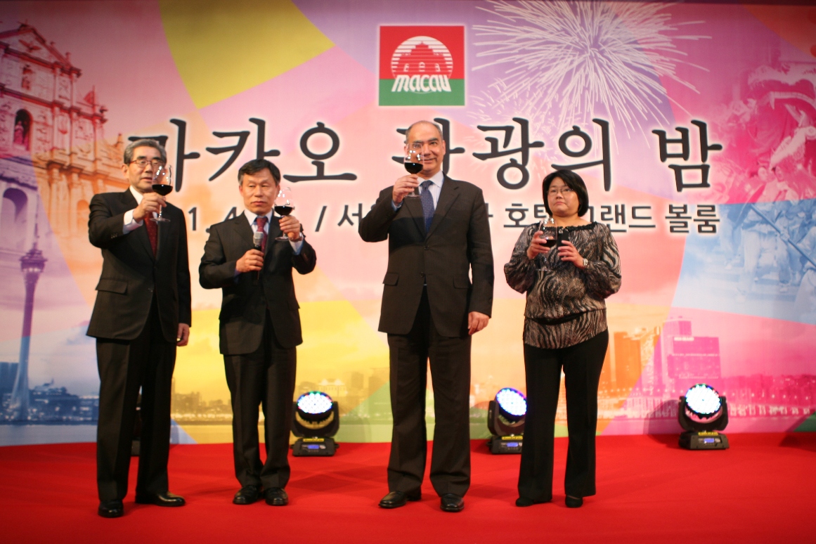 旅遊局在晚上設宴招待首爾的旅遊業者,韓國旅遊發展局副局長沈定輔亦應邀出席。當晚,澳門特別行政區政府旅遊局副局長白文浩除了感謝韓國業界對澳門旅遊業的支持外,也希望能夠與韓國業者加強合作。他表示澳門一直重視韓國市場,去年韓國入境旅客超過三十三萬人次,較去年同期上升百分之六十二。隨著每天均有直航班機往返兩地,今年首季韓國已成為澳門的第四大客源市場。