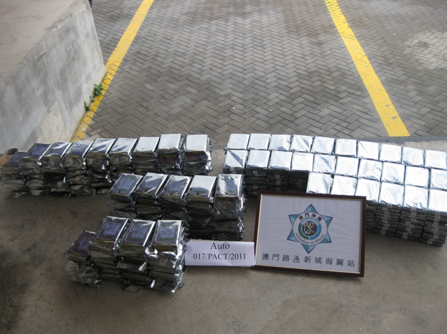 於2011年6月22日下午4時,路氹新城海關站人員,對往來珠澳兩地車輛進行稽查期間,對一輛離境沒有載貨之泥頭車進行風險評估後,透過X光車進行非侵入式檢查,檢查結果顯示該車駕駛室內有異常改動跡象,在關員的細心檢查下,分別在乘客椅背及椅下,以及卡式機暗格內共發現439個未向海關申報之電腦硬盤,約值澳門幣拾伍萬元(MOP150,000),上述違法個案之違法者為一名澳門居民,男性,年約36歲,其將因違反第7/2003號法律「對外貿易法」第十條第一款之規定而被海關起訴,有關違反之相應罰則為可被科處最高澳門幣伍萬圓(MOP50,000)之罰款及充公被扣押之貨物。另外,海關可中止上述違法車輛進出珠澳兩地六個月之期限。
