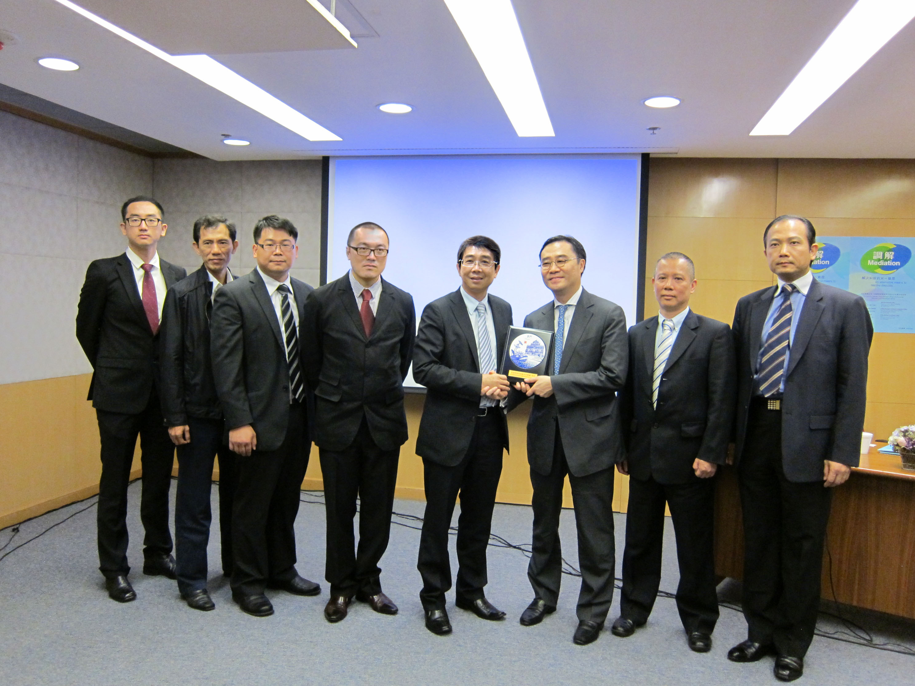 同日下午,仲裁委員會亦與聯合調解專線辦事處主席陳炳煥、董事文志泉、調解顧問葉榮燊等會面交流。會上,從事數十年律師工作的陳炳煥表示,調解可以解決很多法律解決不到的問題,調解是一種保密的、自願解決爭議的方式。在調解中,中立的調解員協助雙方在對立的環境改變為共同尋求可接受的方案;而即使調解不成功,也為日後可能發生的訴訟縮減爭議,而調解達到的和解方案本身亦具彈性,是訴訟時法庭提供不到的。同時調解解決爭議亦為世界各地的趨勢。另外,以他處理個案的經驗指出,調解後很少發生不遵守以書面達成的和解協定,因為所定的協定為雙方商議定下,同時,在過程中調解員亦會按現實情況衡量。另外,他亦認為調解員不一定必須由具法律背景的人士擔任,只要中間、中立,由其他專業範疇的人士擔任亦有其好處。