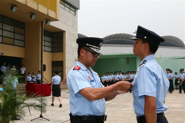 今天(7月11日)上午十二時,在治安警察局特警隊大樓內舉行警員就職典禮。儀式由治安警察局副局長黎錦權副警務總監主持。出席儀式的還有局內各部門的廳長及負責人,為新警員戴上襟章。