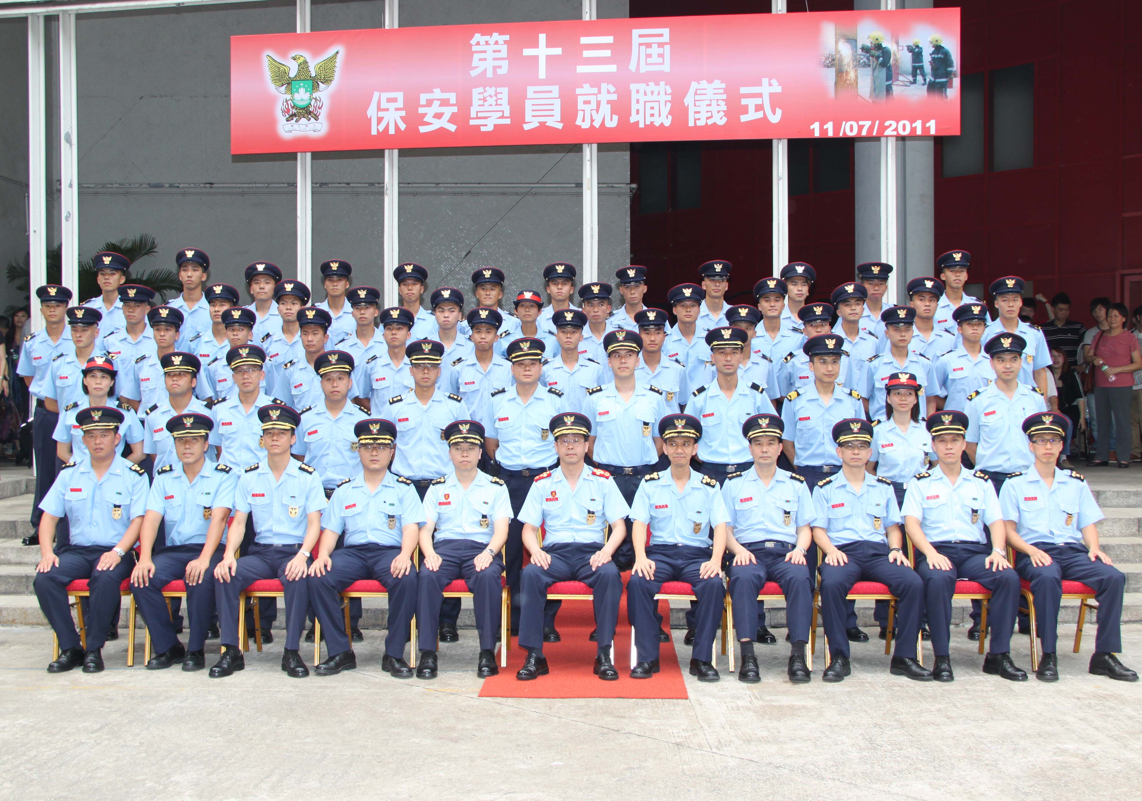 消防局於2011年7月11日在消防局消防學校,舉行了第十三屆保安學員培訓課程之消防學員就職儀式,共有37名消防學員完成培訓課程,正式就職成為消防員,儀式由消防局局長馬耀榮消防總監擔任主禮嘉賓。
