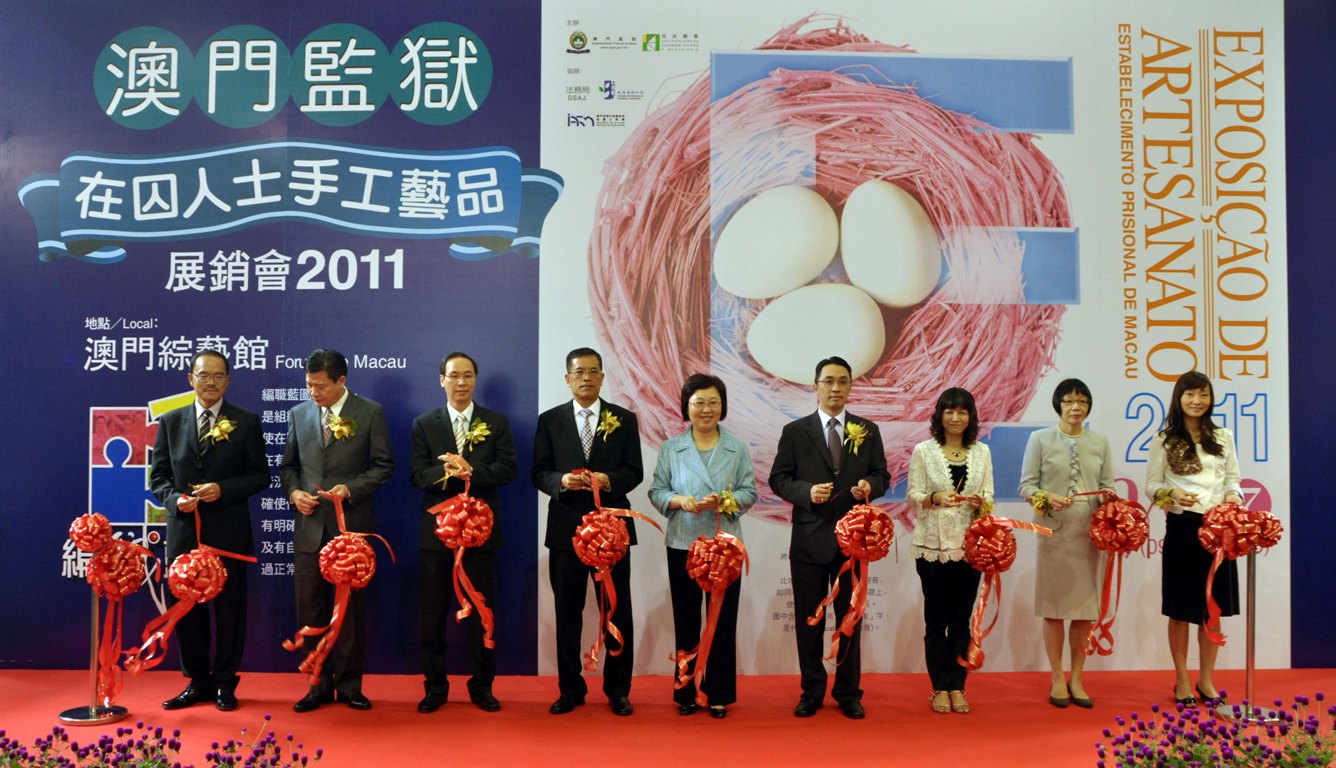 由澳門監獄與民政總署合辦,法務局、教育暨青年局及社會工作局協辦的“澳門監獄2011手工藝品展銷會”於九月二日上午舉行開幕儀式,由代理行政長官陳麗敏司長、保安司張國華司長、澳門監獄李錦昌獄長、民政總署管理委員會羅永德代主席、社會工作局黃艷梅代局長、廣東省監獄管理局于保忠局長、教育暨青年局郭小麗副局長、香港懲教署邱子昭副署長,以及法務局社會重返廳葉少媚廳長出席主禮。