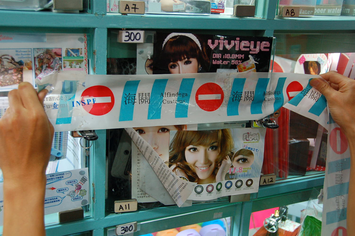 澳門海關在本年年初接獲一品牌權利人之舉報,指有互聯網網站及澳門多間“格仔店”涉嫌出售侵犯其商標權“GEO”及 “NEO”品牌之裝飾性隱形眼鏡,同時權利人曾以電郵及掛號信形式向有關網站及店舖發出警告信。海關收到舉報資料後,立即展開深入調查,並核實該品牌商標已在澳門特區政府經濟局作出合法註冊登記。部分網站及店舖在接獲警告信後已不再售賣該涉嫌偽冒“GEO”及 “NEO”品牌之隱形眼鏡,惟海關偵查人員仍然發現有兩間被舉報的店舖繼續售賣涉嫌侵權物品。此外,在偵查期間再發現市面有另一間涉嫌售賣侵犯“GEO”及 “NEO”品牌的店舖。三間“格仔店”分別位於板樟堂區、紅街市區及雅廉訪區內營運。