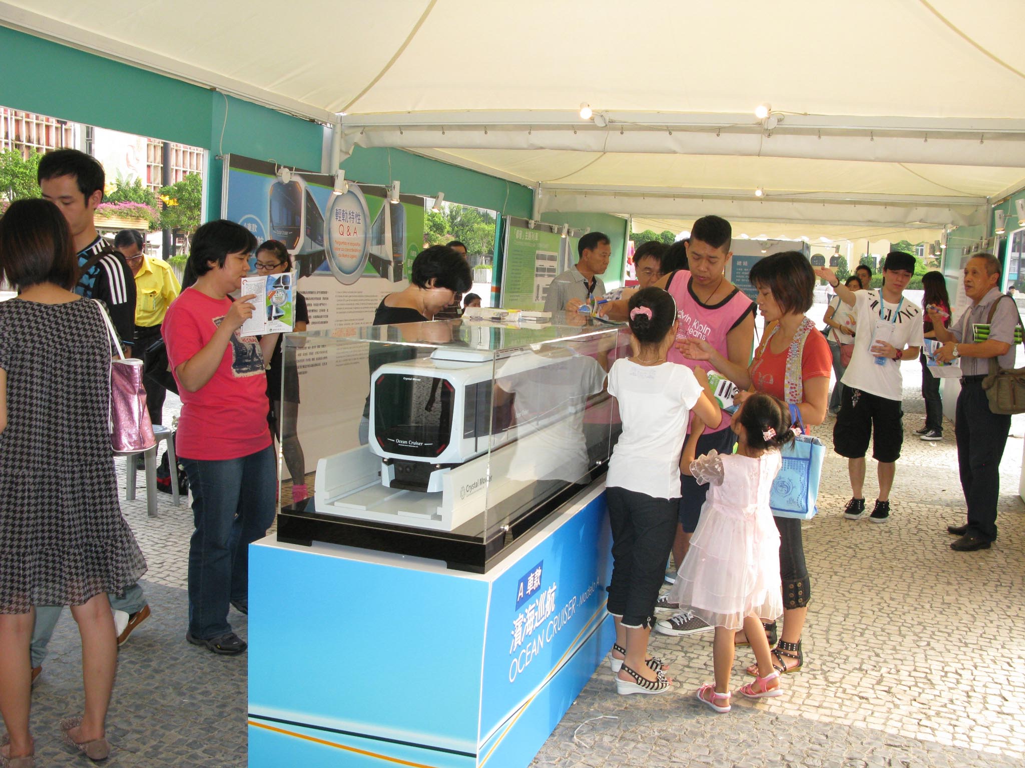 市民可親臨設於塔石廣場的戶外展覽,參觀兩款候選列車外觀的實體模型,也可登入專題網頁(www.git.gov.mo/votos)參與投票及瀏覽活動詳情。