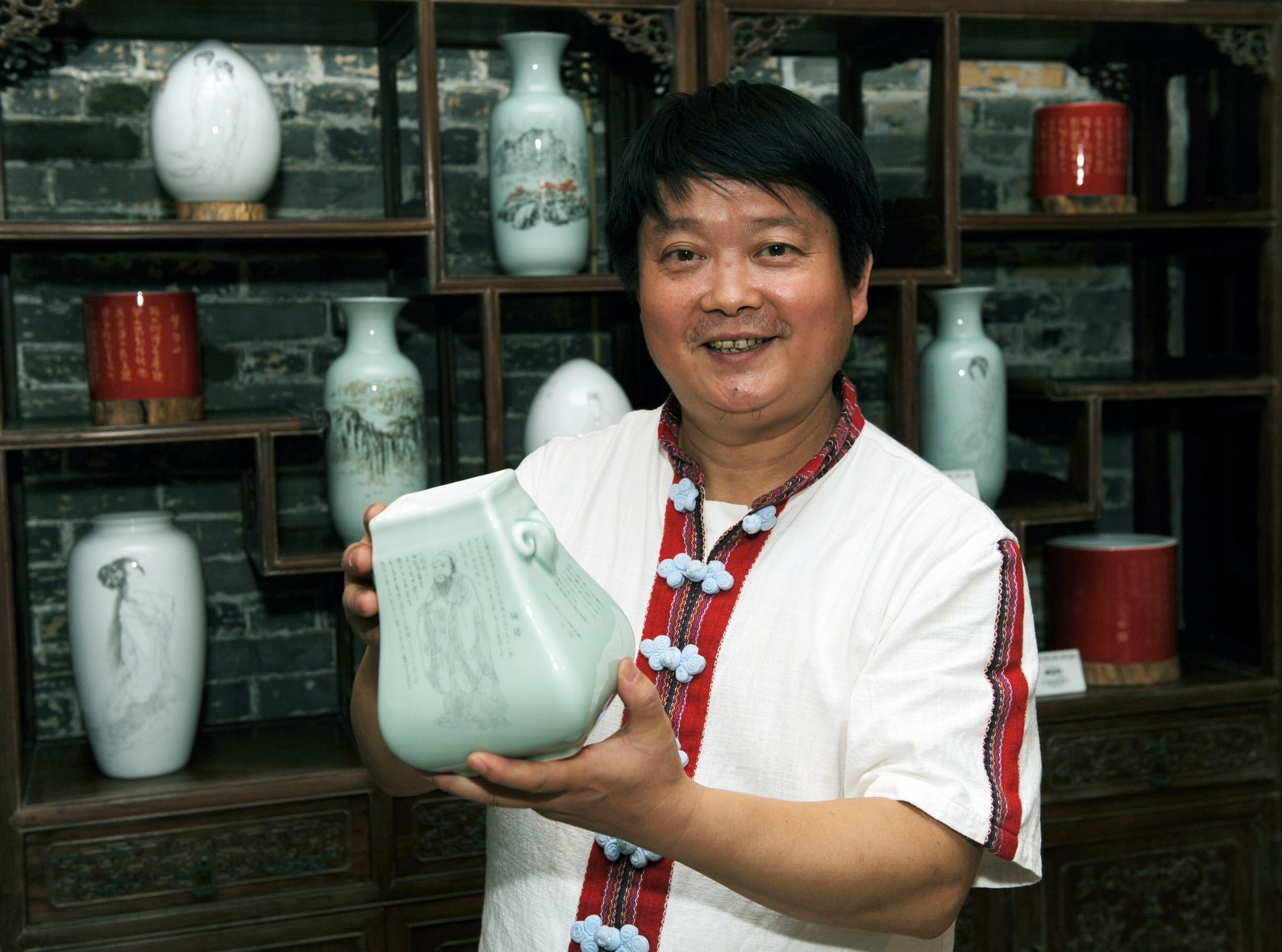山東淄博是我國產瓷的重地之一,素有“瓷城”、“瓷都”之稱,明代已達相當水平,同時成就了不少具影響力的刻瓷工藝家。早期刻瓷以線刻為主,及後發展到於瓷瓶、瓷器上創作,山東省工藝美術大師及陶瓷藝術大師劉永强,擅長進行瓷瓶雕刻這項難度甚高的創作,能以刻工表達中國畫的筆墨效果,為陶瓷作品添上一份雅趣, 達至“觸有手感,觀有筆墨”的藝術境界,其代表作《清明上河圖》歷經三年完成,榮獲第一屆全國刻瓷藝術大賽一等獎,被藝術界專家稱之為“刻瓷巨著”,劉永强並曾為多位國家元首及政府首腦刻製肖像,技法嫻熟,贏得無數讚譽及過百個獎項。