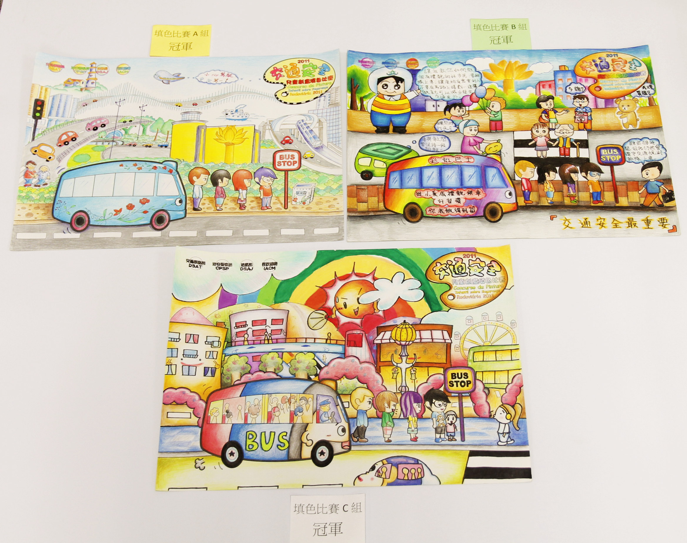 “交通安全兒童創意填色比賽”A組:冠軍何梓朗、亞軍何芷晴、季軍賴俊瑋、殿軍笪仁傑,優異獎五名分別為岑芷羚、李伊玲、胡甄原、崔穎琳、張令沂;B組:冠軍蕭麗婷、亞軍周菀琳、季軍周秭萱、殿軍盧子軒,優異獎五名分別為蔡心瑜、古駿晞、盧芷澄、李伊淇、關凱瑤;C組:冠軍崔曉恩、亞軍陳嘉琪、季軍林燕恩、殿軍鄭麗玲,優異獎五名分別為黃善豐、Gregorio, Manuel Leom Gaviola、郭煥敏、何錦閒、Gaviola, Maria Caterina Pangan。