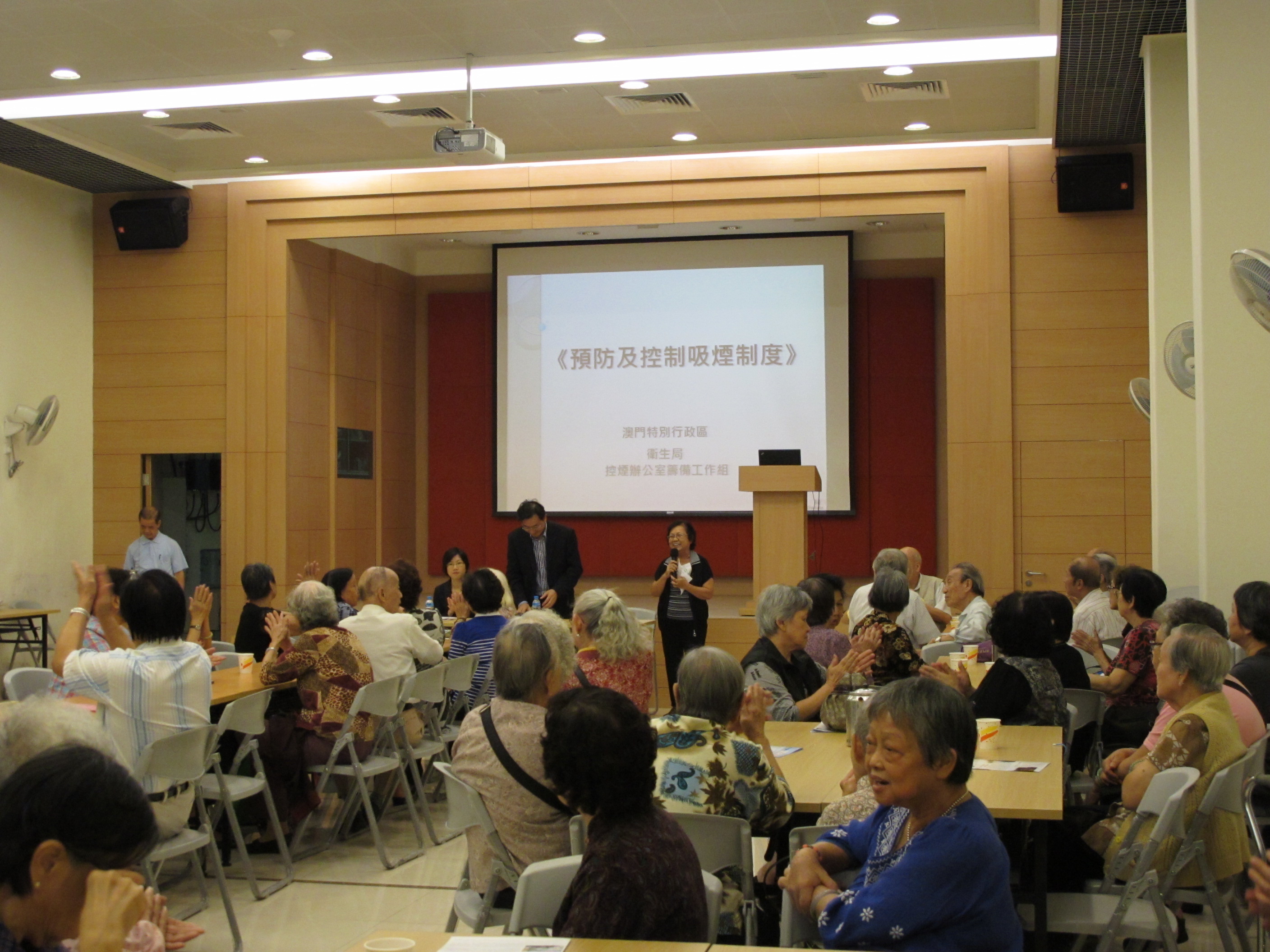 衛生局代表在會上詳細講解了「新控煙法」的法定禁煙地點(包括室內和室外)、相關罰款內容、執法機關等,同時聽取與會者提出的各項問題與建議,並作了詳細解答。有聽眾關注二手煙害問題及提倡全民禁煙的可行性,同時建議是否可讓市民組織義工隊伍巡視吸煙地點。衛生局代表指出,實現全社會的無煙環境,是特區政府最終目標,故希望透過「新控煙法」講座,讓市民明白自身應有權利與義務,也讓吸煙者尊重他人,並藉著各社團協助和參與下,逐步建立健康的無煙城市,達致全面禁煙的終極目標。