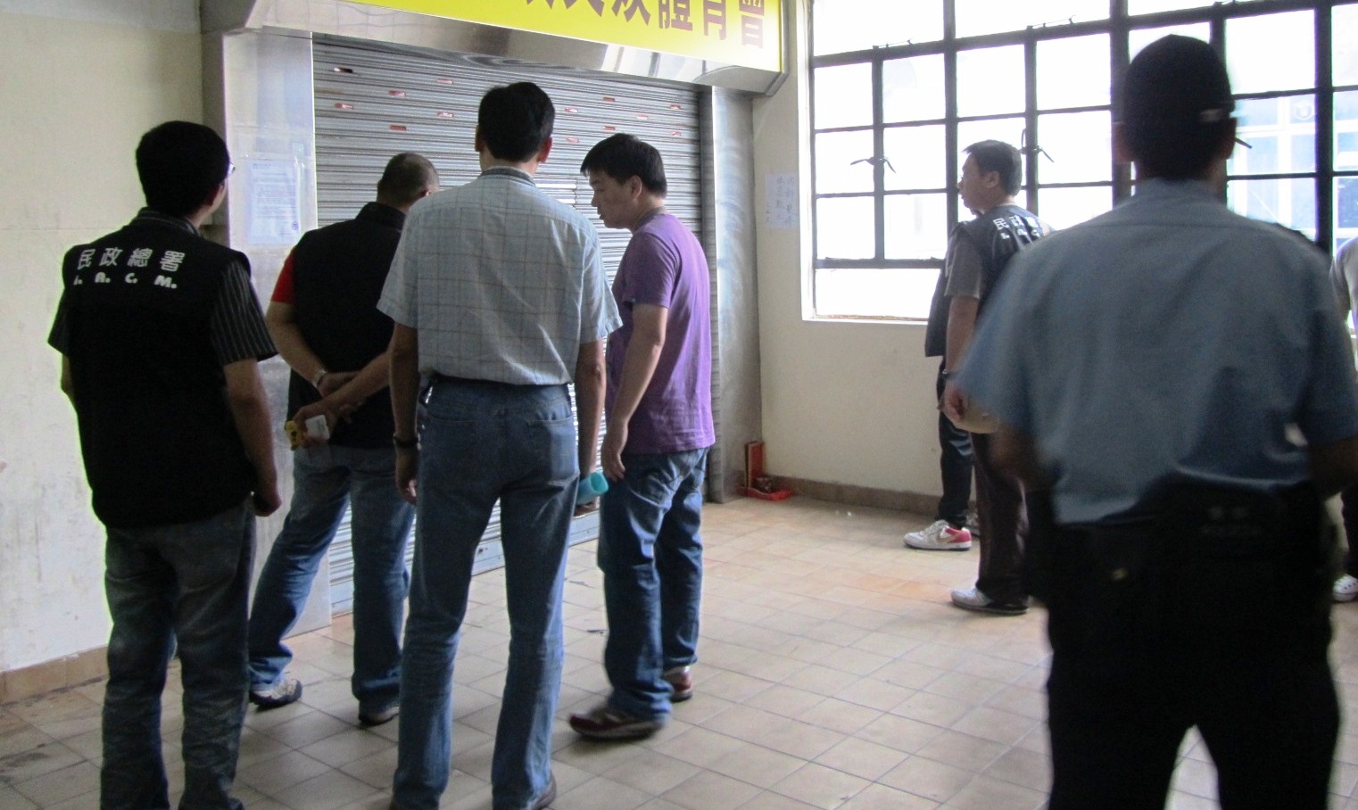 民政總署稽查人員聯同治安警察局警員昨天(十月三十一日)到位於俾利喇街一工業大廈內之體育會進行封場行動,相關場所負責人涉嫌以“體育會”為名、在會址內無牌經營桌球室業務,雖曾被檢控但仍繼續無牌經營相關業務,最終民署聯同治安警察局決定採取本次封場行動。