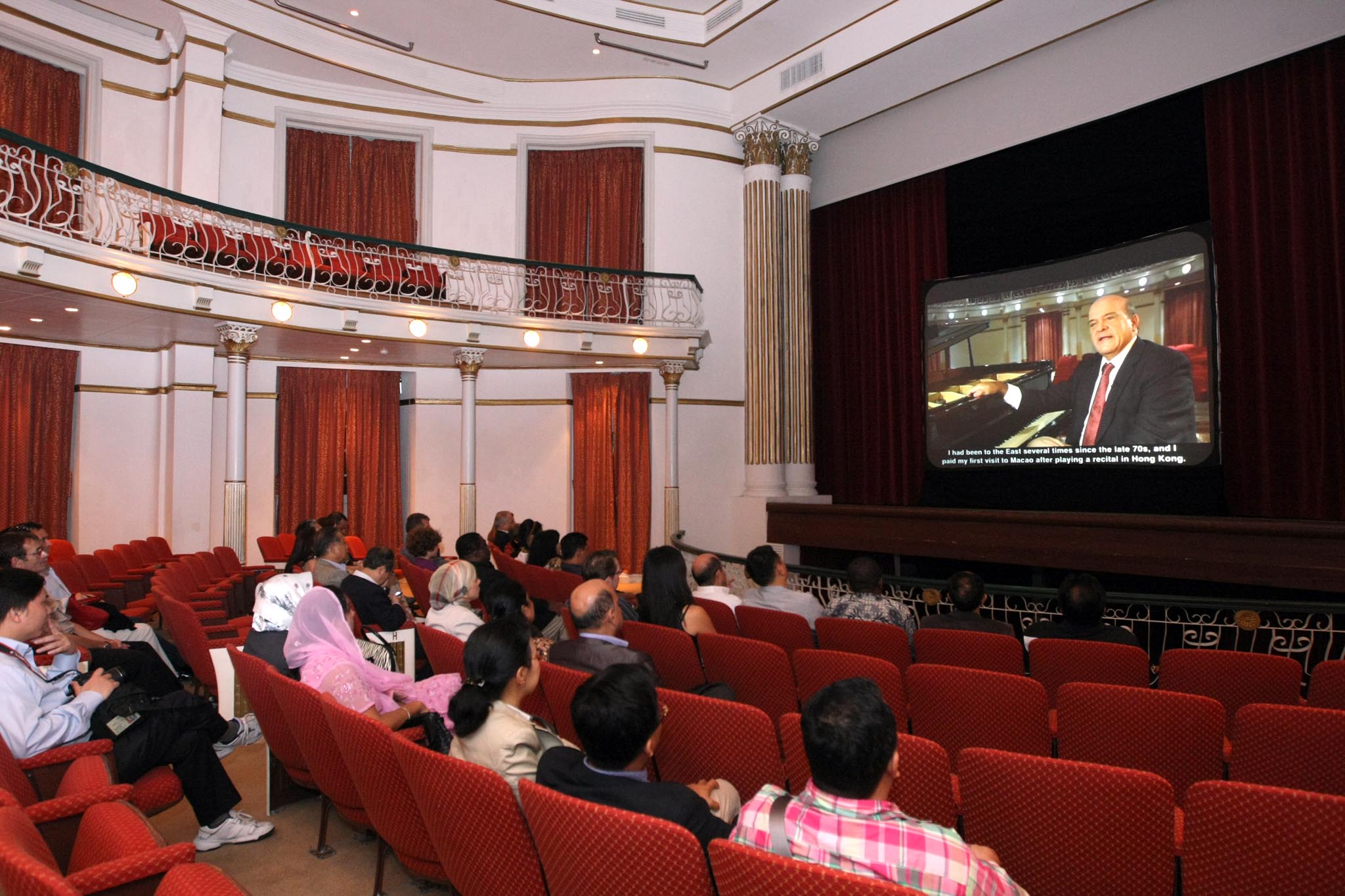 各國駐港澳領事團是次來澳參與音樂節廿五周年的銀禧紀念活動,行程首先在崗頂劇院由音樂節推廣大使導賞介紹“音樂節銀禧珍品特展” ,藉展品讓領事們了解音樂節過去點滴。其後播放文化局花近半年時間,精心籌劃及製作的音樂節銀禧紀念特輯予領事團欣賞,通過嘉賓訪問及珍貴畫面讓領事們認識此項本澳文化盛事之簡史、盛大場景與難忘時刻等,領事團專注觀看紀念特輯,紛紛表現濃厚興趣。