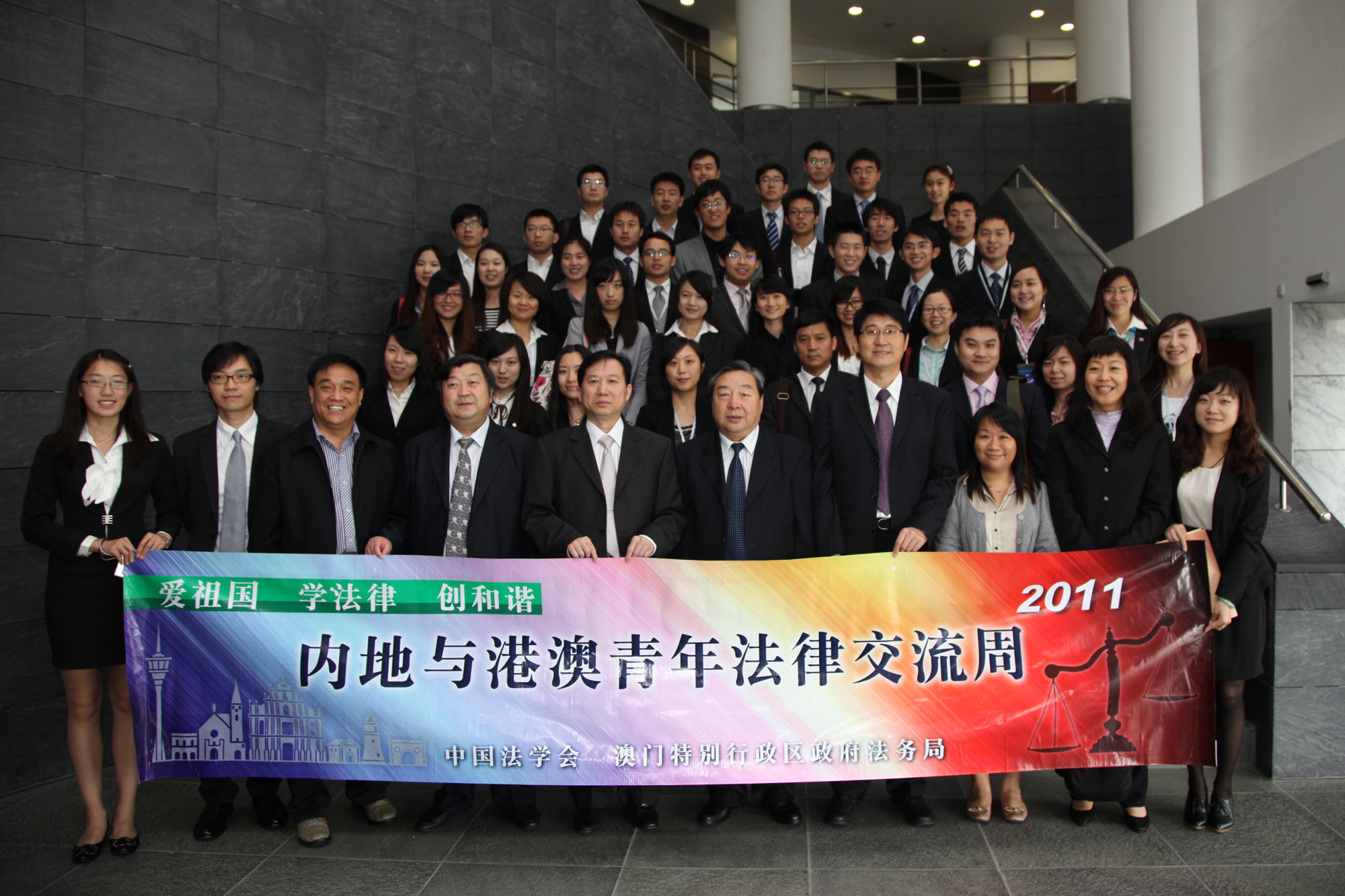 於2008年5月,由中國法學會、共青團中央共同主辦,香港、澳門相關部門參與,舉辦“愛祖國、學法律、創和諧”青少年大型普法系列活動。該活動的其中一項重要內容就是“港澳與內地青年法律交流”,已舉辦了三屆。今年中國法學會組織內地七所著名大學的優秀法律學生來港澳交流,七所大學包括:清華大學、北京大學、中國政法大學、中國人民大學、北京師範大學、華東政法大學、上海政法學院。內地的交流團完成在香港的交流訪問後,於11月8日晚從香港抵達澳門,在澳門還參觀了澳門大學及澳門科技大學,並與澳門兩所大學的法律學生進行交流。