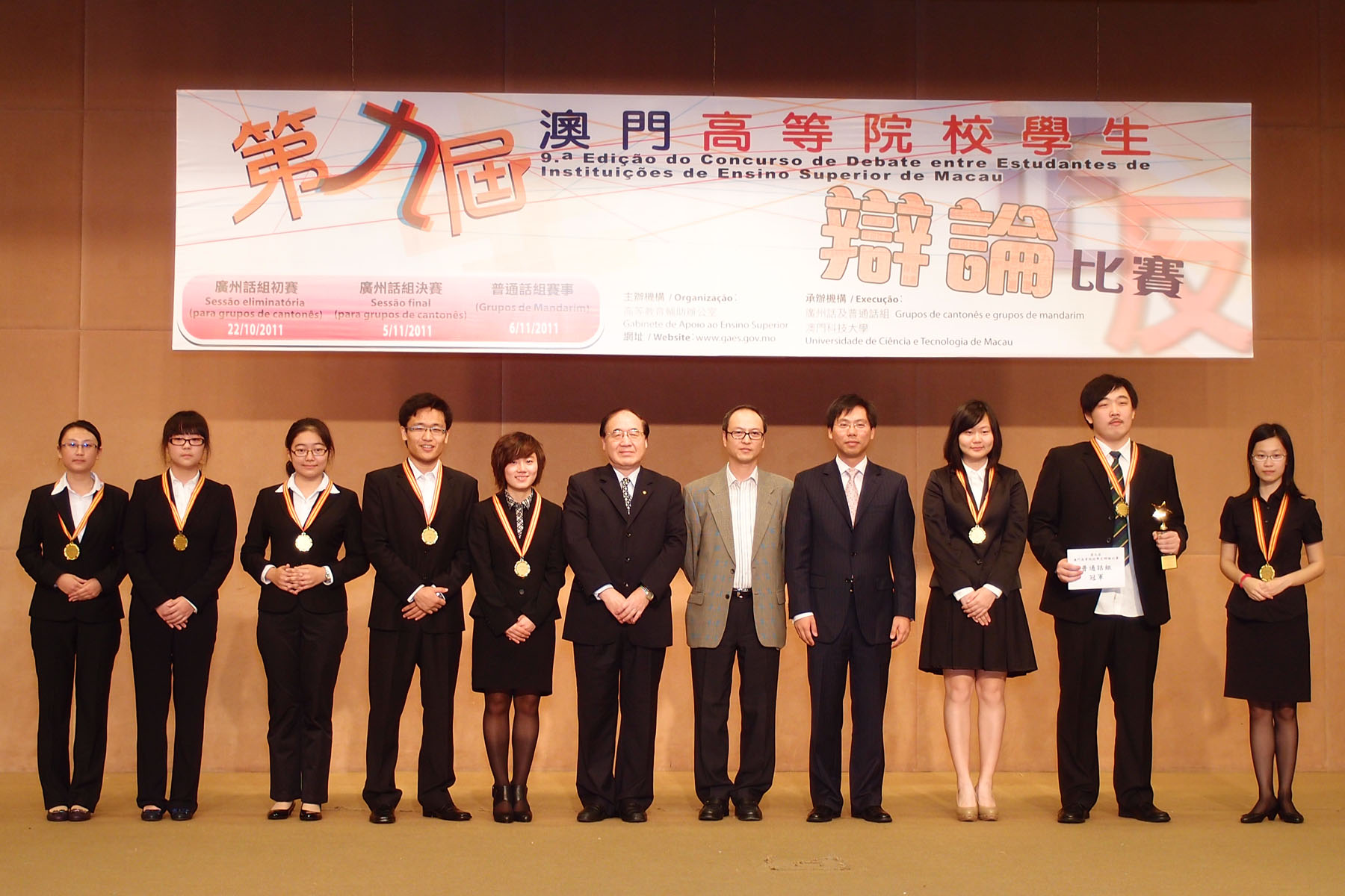 由高等教育輔助辦公室主辦,澳門科技大學承辦的“第九屆澳門高等院校學生辯論比賽”普通話組賽事已於11月6日假澳門科技大學D座禮堂圓滿結束。參賽隊伍來自澳門理工學院、旅遊學院、澳門科技大學及澳門城市大學四所高校,經過六輪激烈的對賽,最後由澳門理工學院奪得冠軍,澳門科技大學獲得亞軍。賽事的最佳辯論員分別由澳門理工學院牧日根及鄭毅,旅遊學院劉春霖,澳門科技大學黃宇韜、陳以拓及李旭同學奪得,其中陳以拓同學更是連續第三年獲得最佳辯論員的獎項。