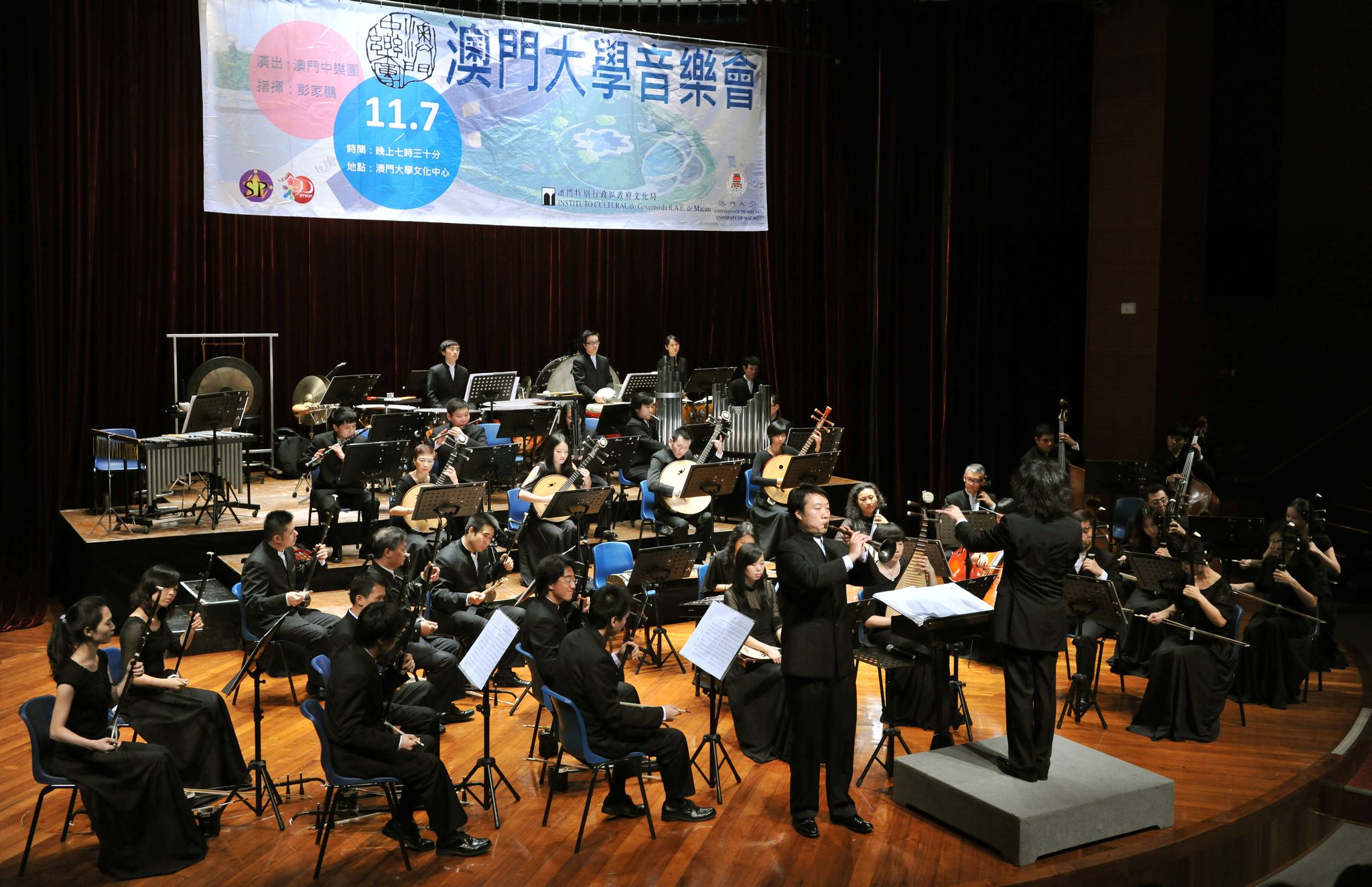 在澳門大學文化中心舉行的音樂會,由澳門中樂團音樂總監兼首席指揮彭家鵬親自執棒並講解。 音樂會開始之前,澳門中樂團總經理周游和澳大學生事務處部門主管林儉華互相致送了紀念品。音樂會演奏了富澳門特色的曲目《中國節慶》,《澳門》、《氹仔》以及葡萄牙民歌如《黑船》、《黑眼睛》、《海之歌》,傳統中國音樂《瑤族舞曲》、《二泉映月》及《黃土情》,廣東特色音樂《步步高》等。參與音樂會的除了本地師生,還包括內地及海外的老師和,不同類型的樂曲使學生進一步了解澳門的多元文化。