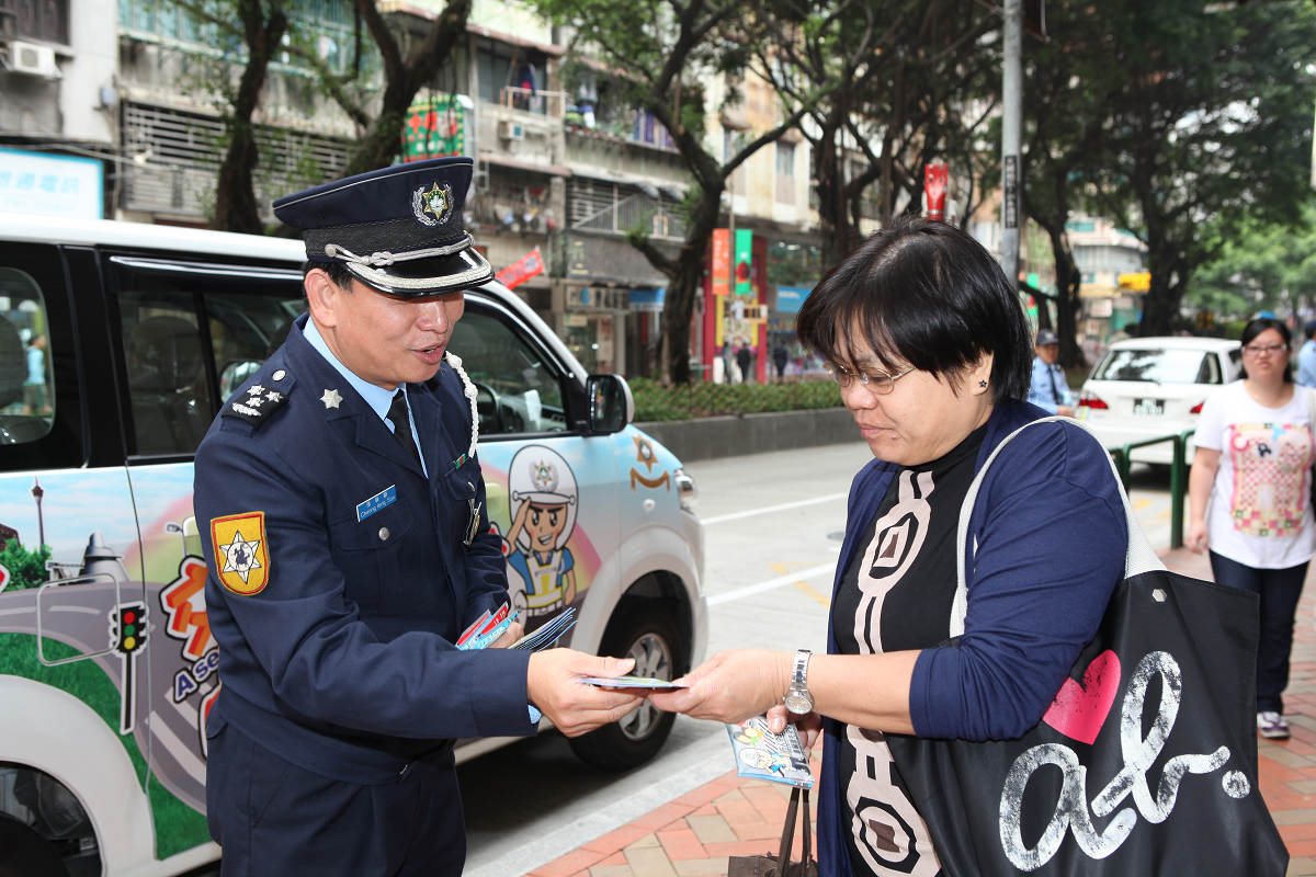交通安全月推廣活動初期,本局派駐警員在各主要街道,勸籲及教導行人正確使用行人設施橫過馬路,對行人及駕駛者作出遵守交通規則的指引,隨後加強檢控行動,以及舉行專題講座等,藉以向大眾說明交通違規的後果,以加強市民對交通安全的重視。總結今次活動成果,本局分別向約1600人次作勸籲及約100人作出檢控。在宣傳教育方面,本年1月至10月本局交通廳共前往22間學校,並向約2000多名學生推廣交通安全知識。