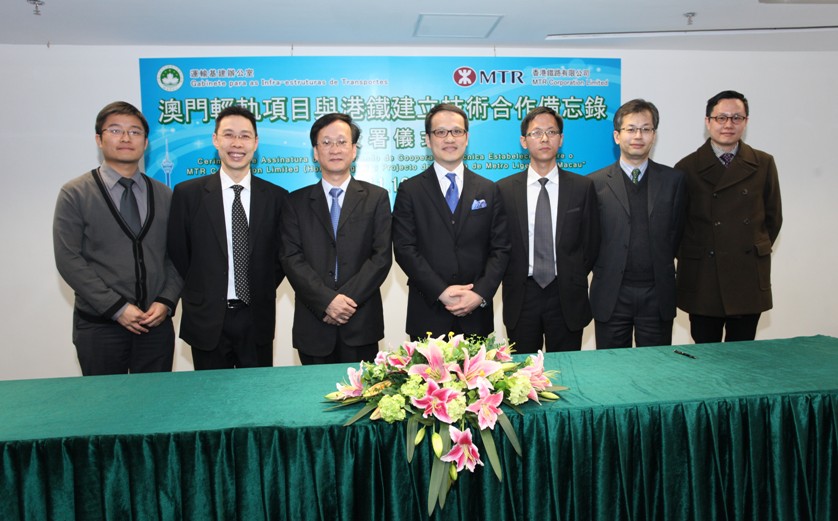 運輸基建辦公室與香港鐵路有限公司簽署「澳門輕軌項目與港鐵建立技術合作備忘錄」,加強港澳兩地就軌道交通系統的技術支援及合作;優化建設及管理項目,進一步提升本地人員的專業技能。