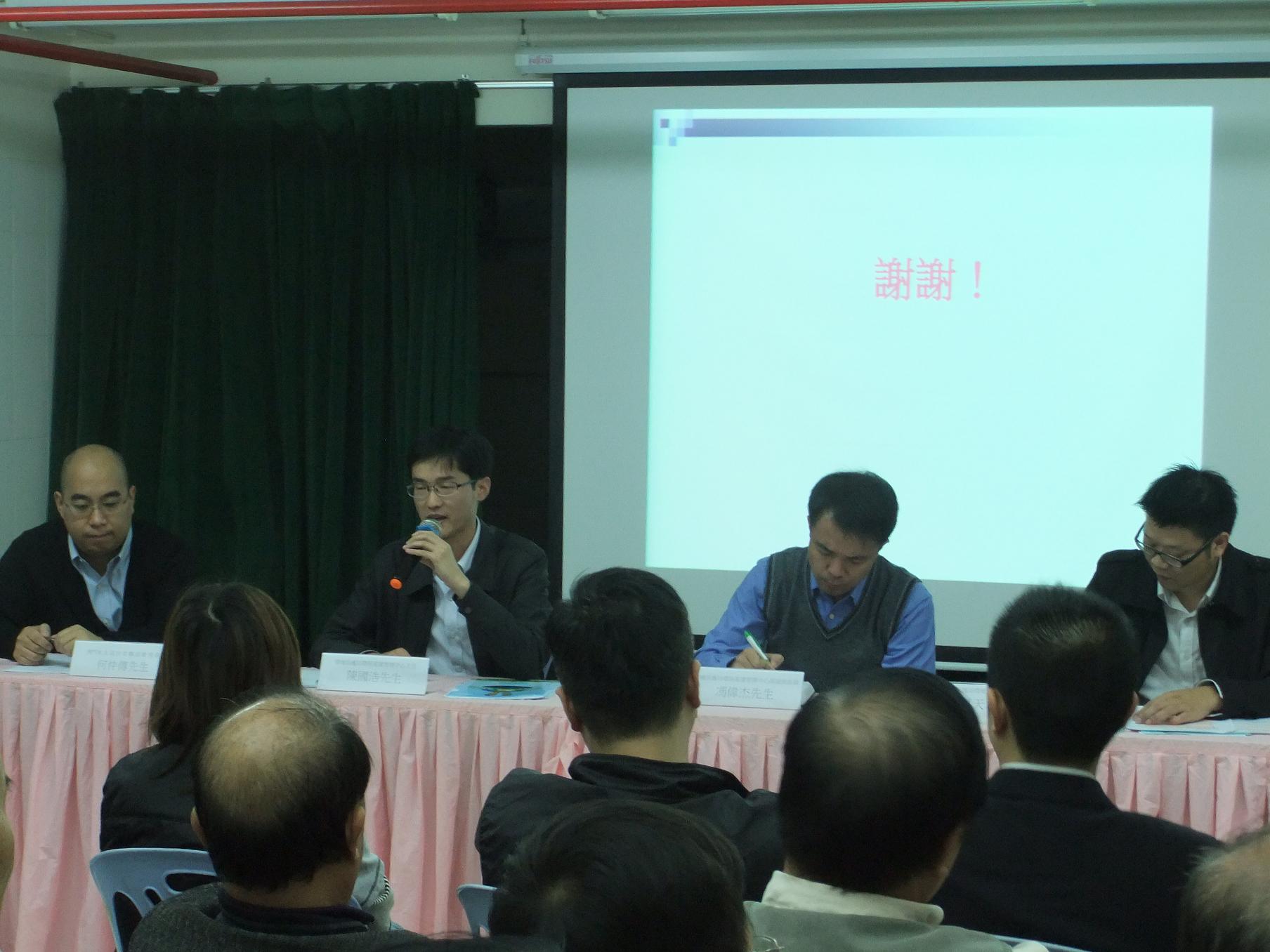 出席座談會的環境保護局人員包括:環保基建管理中心主任陳國浩、環境污染控制廳職務主管莫天才,以及環保基建管理中心高級技術員馮偉杰。陳國浩主任於會上表示,環保局深切理解居民的憂慮及訴求,必定以負責任的態度,盡力改善不足之處,並且在接獲居民反映的意見後已派員即時跟進,主動與鄰近污水廠的大廈管理公司及居民建立直接、互動的溝通平台,從而制訂相應的解決方案,持續跟進及改善污水廠的氣味問題。