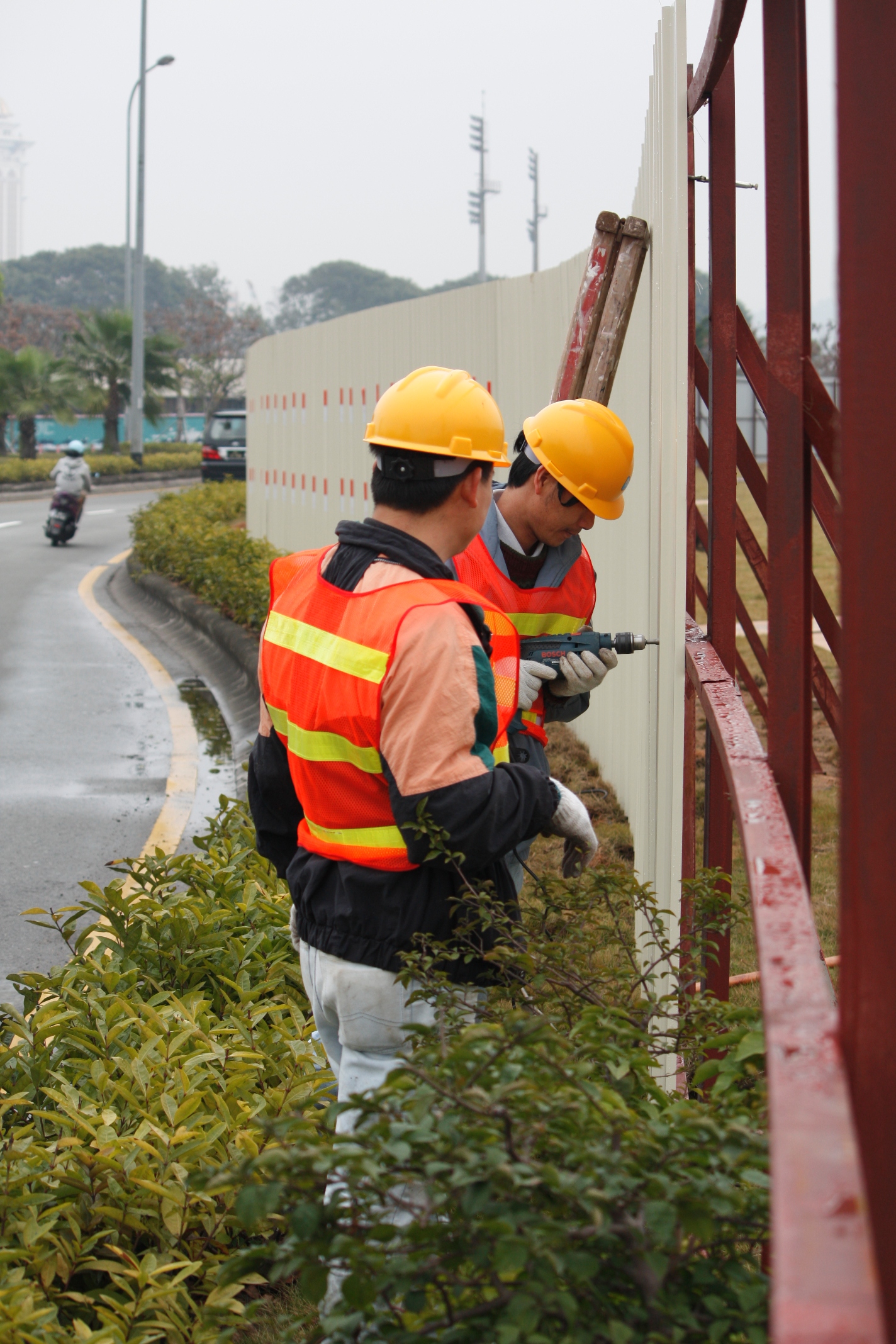 輕軌系統氹仔市中心段建造工程日前正式動土,承建單位已經於東亞運大馬路綠化帶上架設圍板,以便進行超前鑽及試探井等勘探工作,以確定樁柱的深度及地下管線的確實位置,為高架橋及車站的施工作準備。運輸基建辦公室考慮到該路段為西灣大橋出口處,車速較快,因此針對此路段特點,要求承建單位在車輛轉彎位進一步縮窄圍封的範圍,令圍板與車道保持一定間距,減少對駕駛者所造成的視覺影響,並採取一系列措施,包括在圍板上貼反光帶、提前設置警示牌等,提醒駕駛者注意安全。