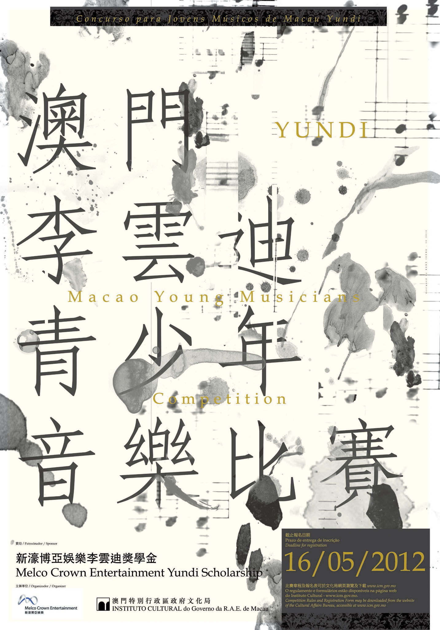 “澳門李雲迪青少年音樂比賽”是為傳承音樂文化藝術,鼓勵本地音樂人發揮個人才華,促進澳門人的文化事業,發掘本地音樂人才,優勝者將可獲得由新濠博亞娛樂李雲迪獎學金贊助的獎學金,金額最高可達澳門幣壹百萬元正。有興趣人士可於四月十六日起於文化局網站下載比賽章程及報名表格,遞交至塔石廣場文化局大樓,或以郵寄方式提交(以郵戳日期為準)。報名截止日期為五月十六日下午五時三十分。