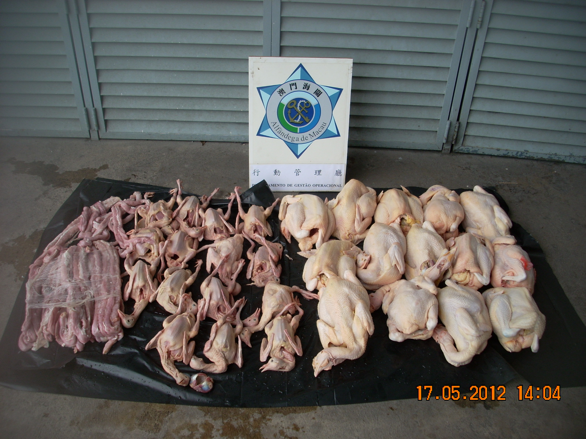 是次行動,共檢獲已宰鮮雞14隻、已宰乳鴿15隻及豬腸3公斤,合共38公斤。