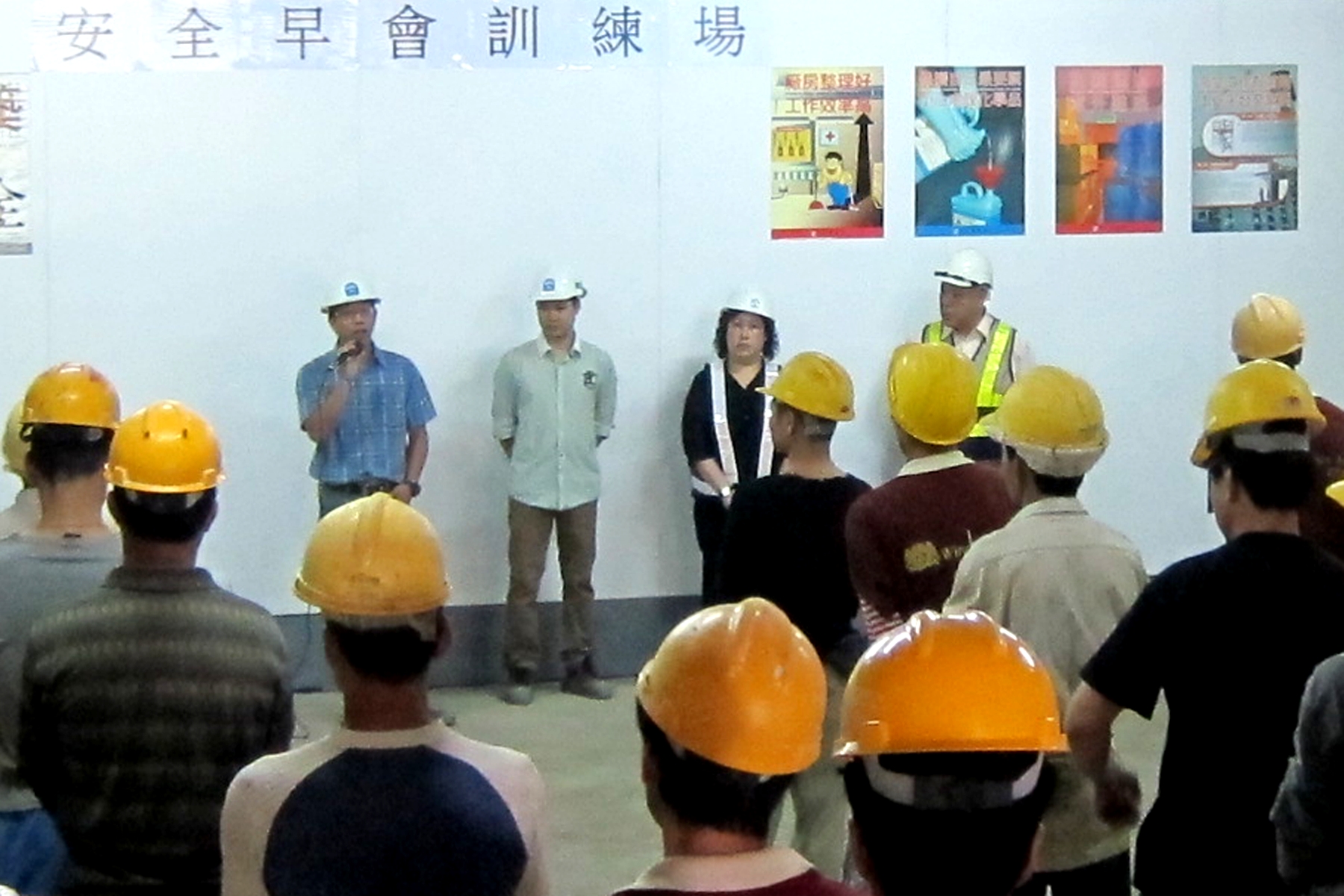 局方敦促承造商每日須在工地召開『安全早會』,首先由安全督導員帶領工人進行早操,透過伸展運動使工人身體肌肉及關節得到舒展,以減低受傷的機會,更可建立團隊精神和加強彼此的合作默契,促進機構的安全文化。早操後由安全督導員、管工、領班向工人講解當天的工作和工序、應注意的安全事項和存在安全隱患需要改善的地方,確保將各項安全須知直接傳達到地盤的每位工作人員,讓各人提高警惕,做好預防措施。參與安全早會的工程管理層及工人均認同安全早會能加強安全督導員、管工、領班及工人的直接溝通,有利於檢視和改善現行職安健措施的不足之處,共同做好工地的安全管理工作。