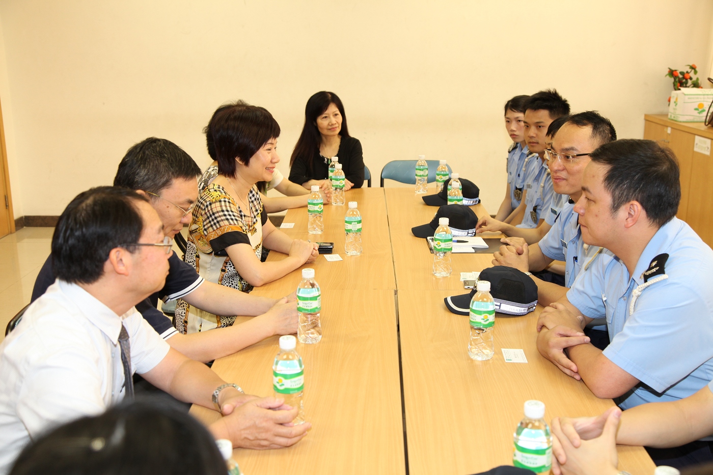 本局一行人先拜訪坊會並進行簡短座談,負責人及理事等積極提出市民關心的問題,指出區內娛樂搏彩場所林立,易衍生週邊治安問題,如非法旅館、盜竊、街頭詐騙、操控賣淫等,希警方在持續宣傳和打擊上加大力度。