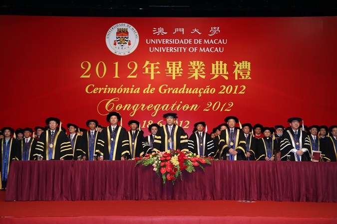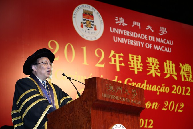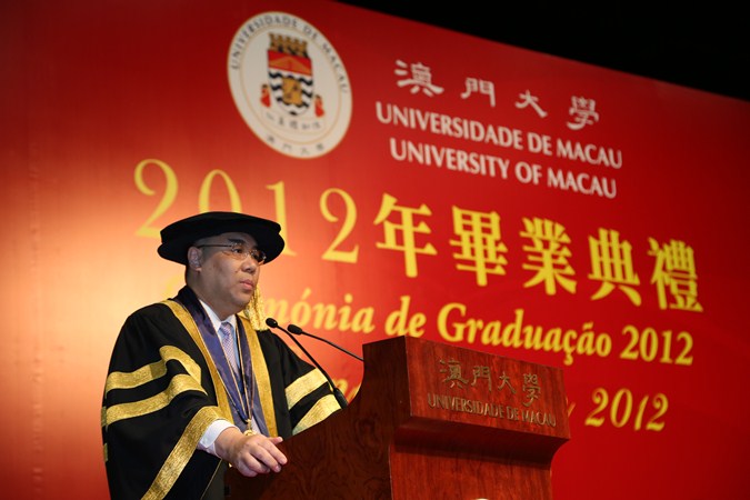 澳門大學昨日(18日)舉行二○一二年畢業典禮,近千名畢業生出席。澳門特別行政區行政長官兼澳大校監崔世安博士表示,澳門特區政將進一步落實加大高校事業的投入,支持澳大發揮自身優勢,打造國際化的教學和科研體系,培養更多本地人才。澳大校長趙偉教授表示,會把握新校區的優勢大幅提升大學,澳大要贏在新的起跑線上。