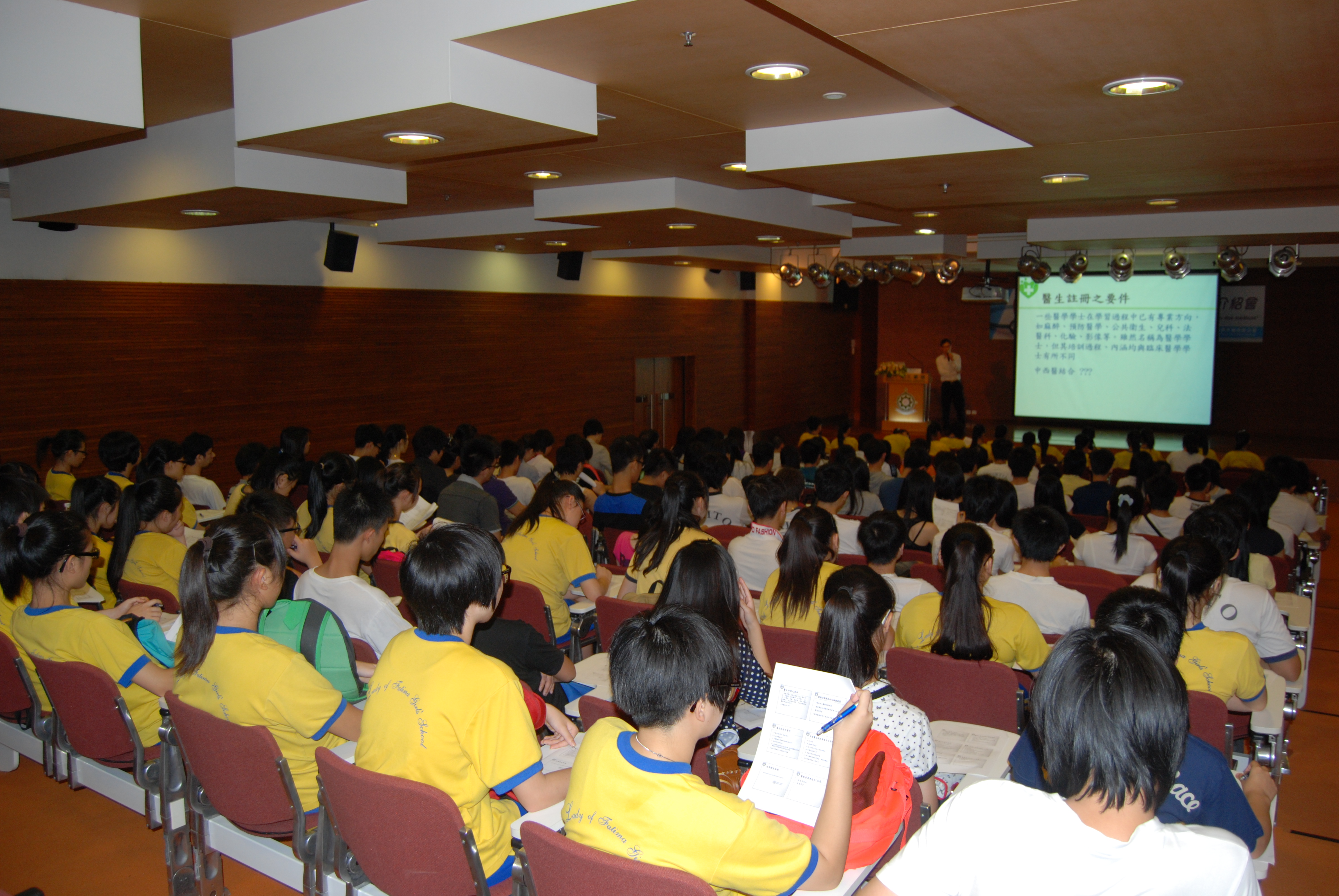 高等教育輔助辦公室日前舉辦醫生之「道」──專業認證介紹會,邀請衛生局實習醫生培訓委員會主席周志雄醫生講解醫生專業認證,吸引高中生、醫科學生等共145人參加。