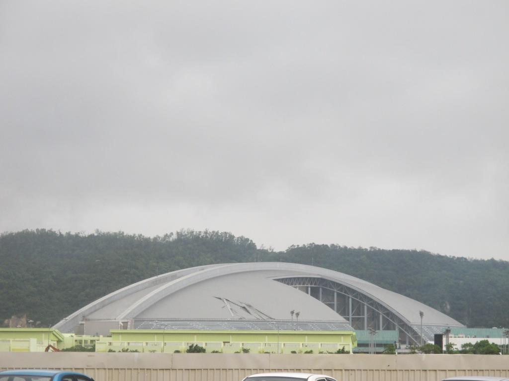 澳門東亞運動會體育館受颱風“韋森特”影響出現部份頂蓋掀起情況,場館出現滲漏,其它一切運作正常。建設發展辦公室與承建方已於事發後立即趕往現場了解情況及評估損壞程度,並隨即展開會議,商討有關緊急修補方案。