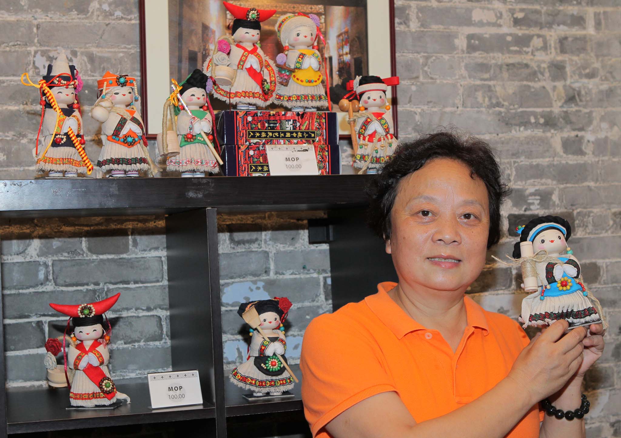 另一由貴州工藝美術大師嚴曉妮所創的民族娃娃,是表現貴州民族服飾、民族風采的一朵亮麗奇葩,現有近百種系列產品、上千款不同造型,造工精妙絶綸。是次來澳,嚴曉妮除帶來極具當地民族風韻的傳統娃娃外,更有抽象而富文化底蘊的“圖騰娃娃”系列,外型討好趣緻。