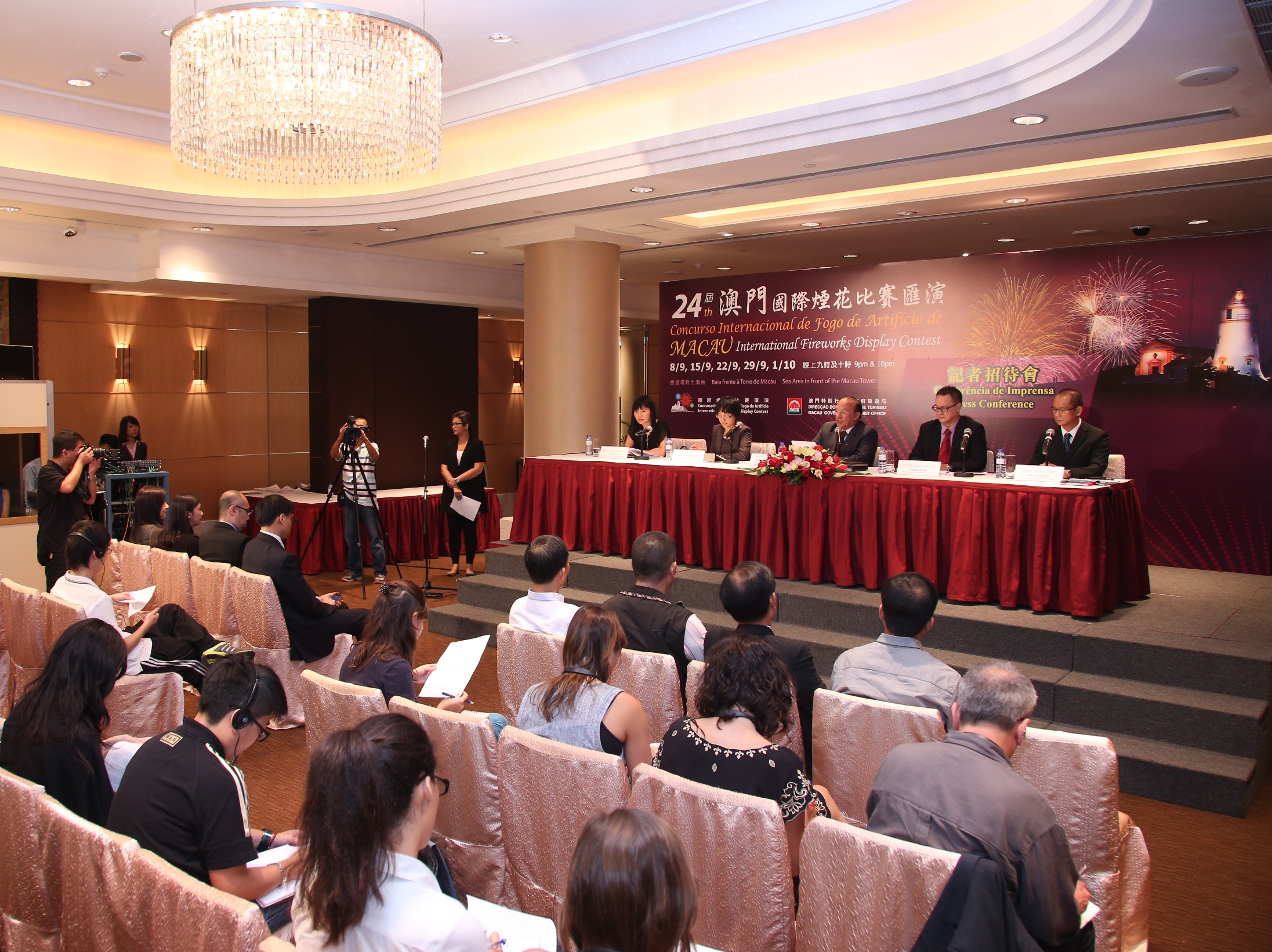 澳門國際煙花比賽匯演由澳門特別行政區政府旅遊局主辦,旅遊局局長安棟樑於記者會介紹本屆煙花比賽匯演情況。