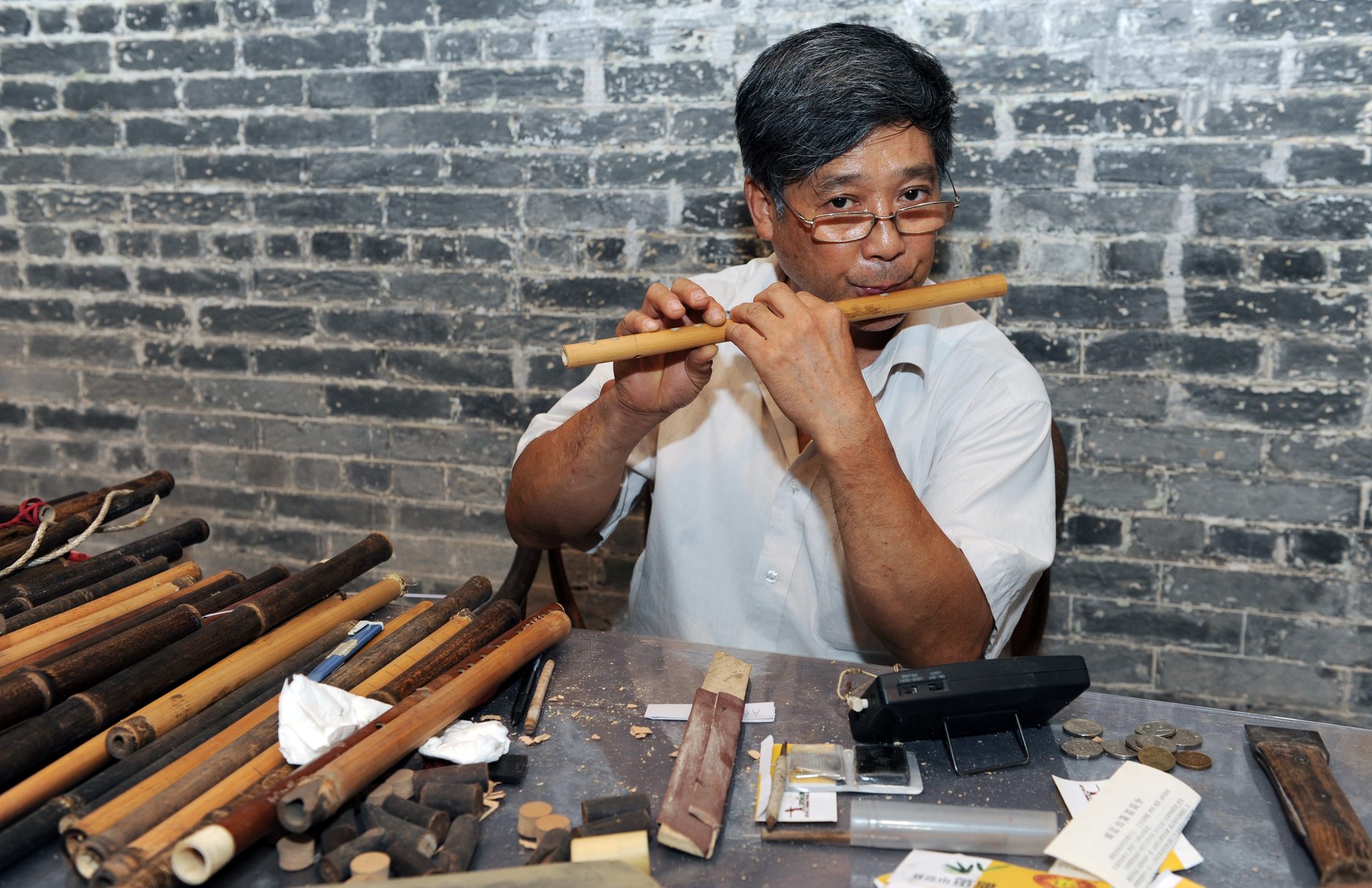 中國的笛和簫都以竹管製造而成。中國的雕刻藝術家一向喜歡以竹子作為雕刻藝術的載體,在竹笛和簫的管子上雕刻字畫也就成為自然的事。自古以來,笛和簫已經成為了視覺藝術和音響藝術的結合體。貴州省玉屏縣於明代萬曆年間就有“龍簫鳳笛”(因簫笛上雕刻精美的龍鳳圖案而得名),是國家級非物質文化遺產。簫笛竹管上細膩逼真的山水、花草、鳥獸、詩詞圖案紋飾,美倫美奐。貴州侗族工藝家、國家級非物質文化遺產項目代表性傳承人劉澤松來澳展演“平簫玉笛”製作技藝,從事簫笛製作已有四十五年,其微雕、浮雕圖案做得精細動人,作品名揚世界。