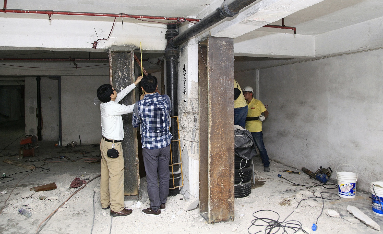 此外,局方日前邀請了香港大學土木工程系的專家教授來澳參與善豐花園的技術檢測工作,以便強化檢測質素,專家隊伍日前與局方開會及初步分析了善豐花園的技術資料,並實地了解現場狀況及與局方技術團隊共同制訂了工作方向,今天在局方人員陪同下,在現場進行初步檢查及指導專業檢測團隊工作,並抽取了大廈混凝土樣本,帶回香港作進一步檢驗,日內將有初步分析。