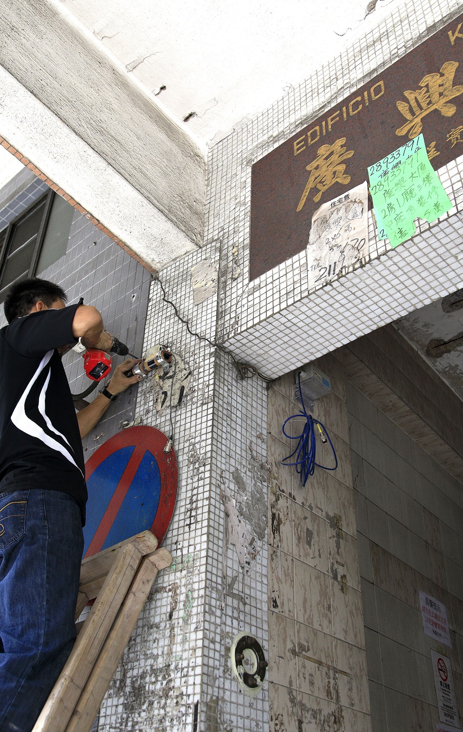 局方今日(14日)繼續督促承建商對大廈進行第二步臨時加固措施安裝工作,已於今午基本完成,隨即進行焊接。至於對樓宇的各項技術測試及檢驗工作仍在進行,而對相鄰大廈的監測工作亦相繼展開,成功在廣興大廈、利昌大廈及澳華大廈安裝監測儀器,進行持續的監測。