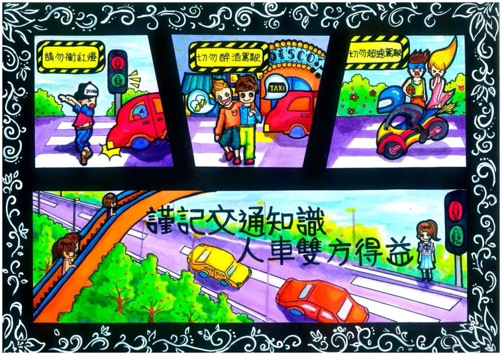 由交通事務局、治安警察局、法務局、民政總署主辦,漫畫天地工作室協辦之“2012交通安全四格漫畫創作比賽”已於今年9月至10月期間順利進行,主辦單位共收回33份參賽作品。經評選後,是次比賽分別由楊寶儀及梁曉慶奪得“青少年組"及“公開組"之冠軍,各獎項將於本月底舉行的“交通安全嘉年華2012”活動上頒發。