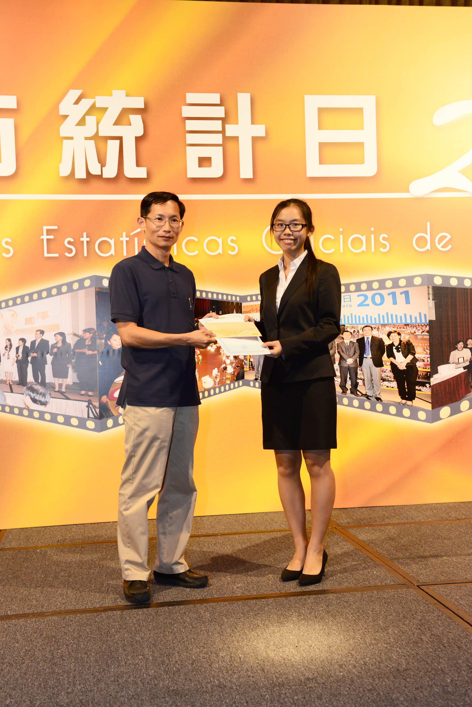 此外,當晚頒發第二屆大學生統計習作比賽冠、亞、季及優異奬項。冠軍作品為澳門大學的《空樓夢 - 澳門八十後買房問題研究統計報告》、亞軍作品聖若瑟大學的《博彩的羈絆 - 活在博彩下的澳門》、季軍作品澳門理工學院的《居者有其屋?》;分別獲得奬金15,000元、8,000元及5,000元。總決賽花絮及得奬作品已上載該局網頁www.dsec.gov.mo。