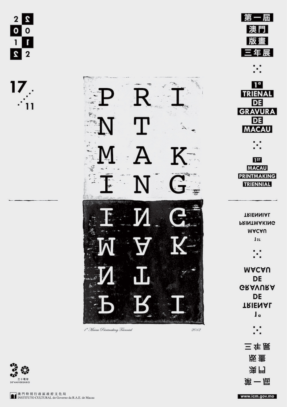由文化局主辦、澳門版畫研究中心協辦的國際版畫交流盛事──“第一屆澳門版畫三年展”,集亞洲區十一個國家地區,包括中港台澳兩岸四地及日本、南韓、新加坡、馬來西亞、泰國、越南及印度等重要版畫創作都會的近百件名家作品,於南灣舊法院大樓展出。展覽將於十一月十七日(星期六)下午五時開幕,展期至二零一三年二月十七日。