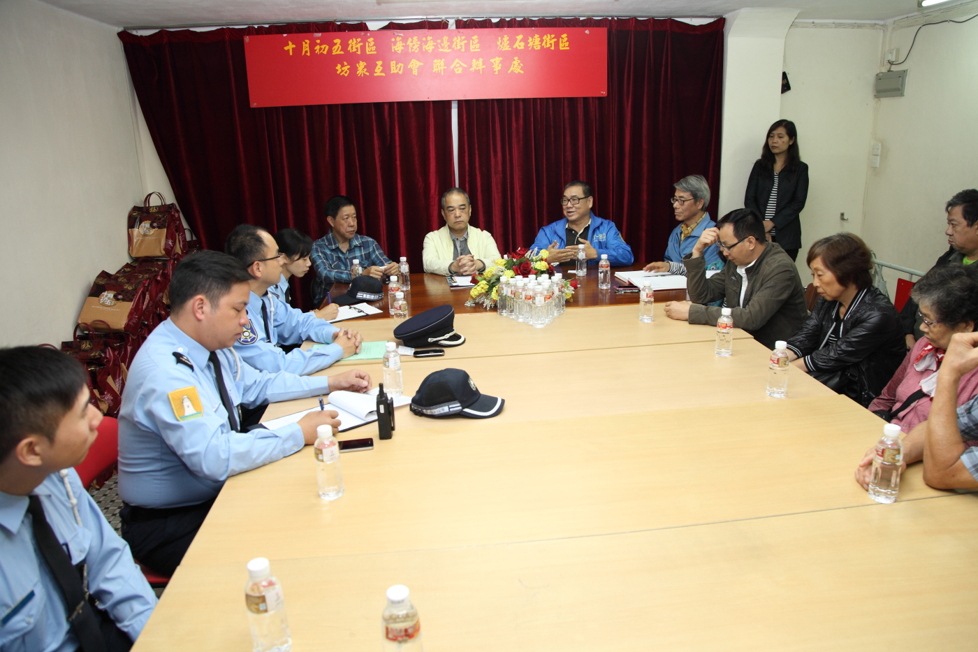 會上各坊會代表積極發言,紛紛就區內治安管理、交通執法等積極提出意見和建議,特別指出由於鄰近旅遊區,不同品流人員出入,易生盜搶類治安問題;另外,凌晨常有外藉人士或癮君子流漣海旁公園內,易潛伏毒品犯罪,希望警方多派人員入內巡邏,並且針對區內特點調整定點和機動警力。事實上,警方關注三坊會一帶屬於舊區範圍,以橫街窄巷為主,匪徒容易藏匿;多數大廈為低層舊樓且無物業管理,缺乏強有效的、全面的居所保安。故此,鄰里守望互通警情十分重要,同時亦應檢查大廈門禁防盜等設施,在適當位置加裝照明設備,以保安全。與警方保持緊密聯繫,遇有可疑情況及犯罪發生,應及時報警,使警方可以盡快打擊及作相應部署。