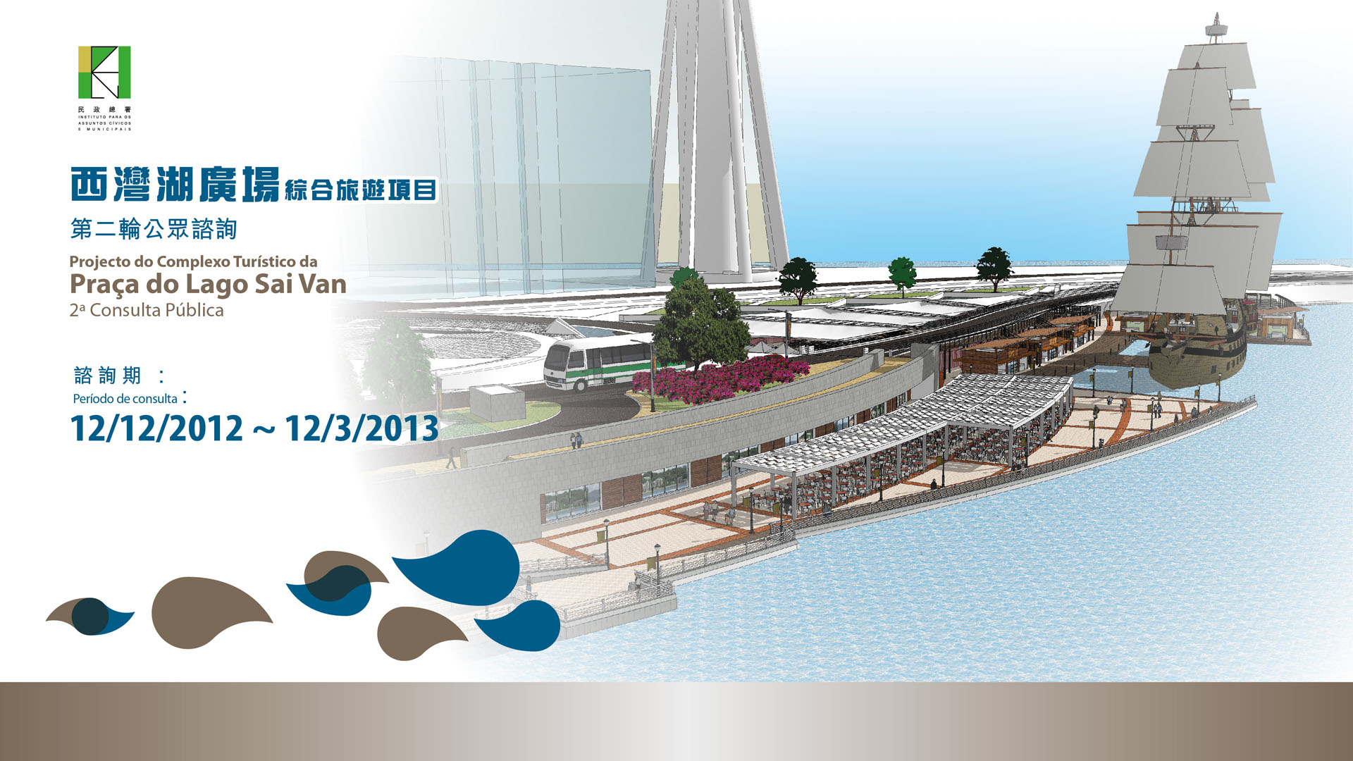 因應近期公眾對西灣湖廣場綜合旅遊項目極為關注並表達意見,特區政府本著科學施政精神,將由二零一二年十二月十二日至二零一三年三月十二日,進行第二輪公眾諮詢,聽取社會對項目之意見。
