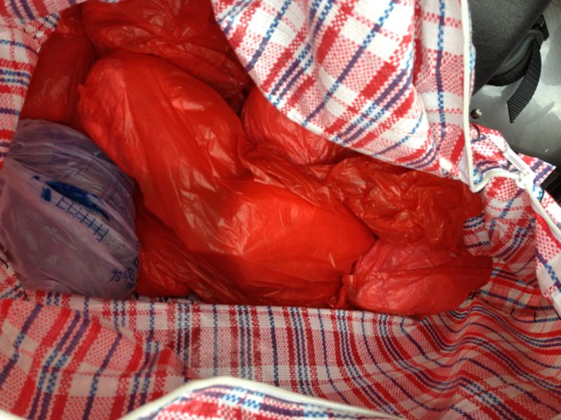 本月八日早上海關行動管理廳關員在關閘外圍對水客進行監視行動,於早上七時十五分左右,海關關員發現有數名水客所攜帶的物品有異常,因此,海關關員尾隨其後,發現有關水客把攜帶回澳的數袋物品放置於菜園路永寧廣場斑馬線附近地下,約七時五十五,一男子整理有關物品準備離開時,海關關員採取截查行動,檢獲一批未經檢疫之已宰鮮雞隻,豬內臟等物品。