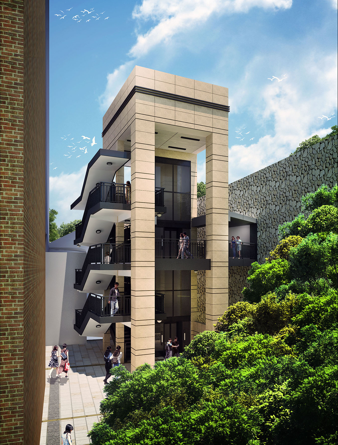 主體工程是將隧道圍原有樓梯改建,增加設有升降機的無障礙行人過路設施,升降機並將附有發聲提示裝置及凸字按鈕等設施,以方便長者及殘障人士通行。另一方面,將於培道中學後方開闢道路,貫通山邊街,以增強周邊道路的使用性;同時,也將對加思欄馬路與羅理基博士大馬路交匯處至聖羅撒中學之間的街道進行美化及山坡整治,包括重鋪美化行人道路,鋪設防滑地磚及導盲磚等。