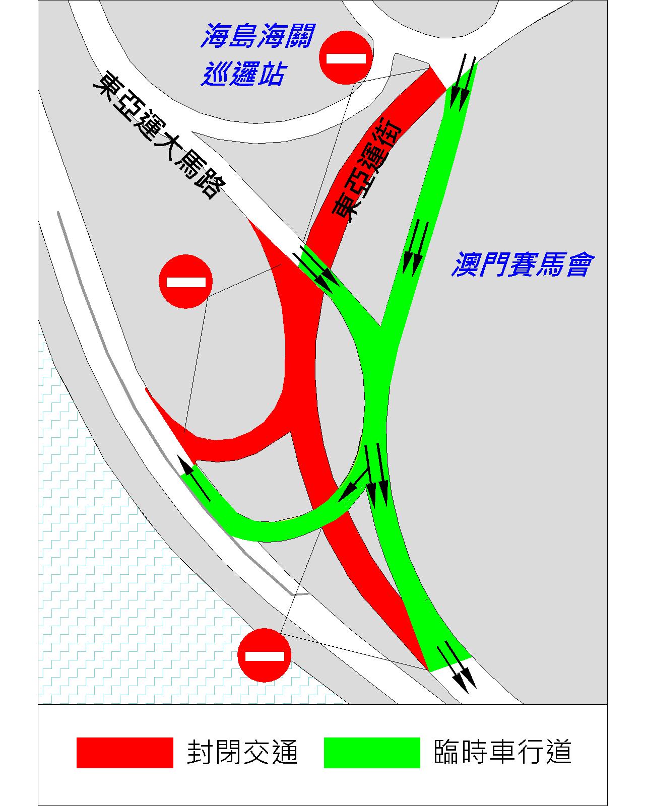 土地工務運輸局正進行氹仔東亞運大馬路下水道工程,以擴大地下排水管,避免在雨季期間該處可能出現的水浸情況。該工程配合氹仔柯維納馬路的輕軌及交通樞紐建造工程推進,工程將會分階段進行,首階段由周三(30日)上午10時起,近澳門賽馬會的一段東亞運街及往路氹城方向的一段東亞運大馬路將實施封閉交通,相關部分的工期約68日。由於上述道路是往來澳門及氹仔的重要道路,為此,土地工務運輸局已在該處開闢臨時車道,並於同一時間開放予公眾使用。交通事務局呼籲駕駛者留意,並遵守臨時車道上所設置之交通標誌。