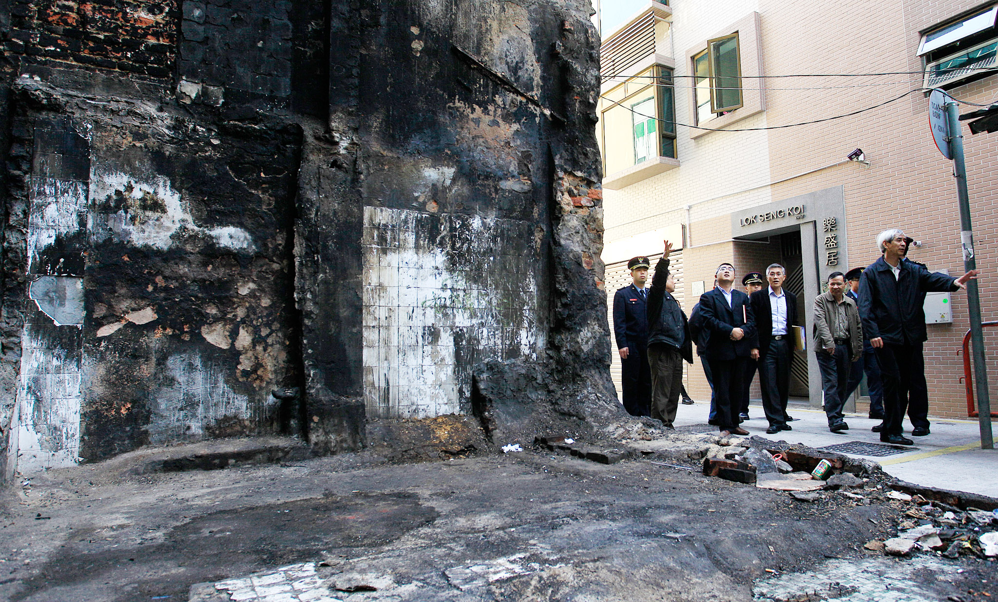 日前,消防局技術廳廳長王健及土地工務運輸局城市建設廳廳長陳榮喜等政府代表應居民要求,視察了新橋區及沙梨頭區多個存放雜物的未施工地盤,並與新橋區坊眾互助會會長梁慶庭、副理事長杜燦榮及沙梨頭坊眾互助會理事長陸南德等代表會面,交換意見,探討有關未施工地盤防火安全可實施之工作。坊會代表提出了多項建議,並認為可對一些問題較顯著的未施工地盤張貼通知,以起提醒及阻嚇作用。