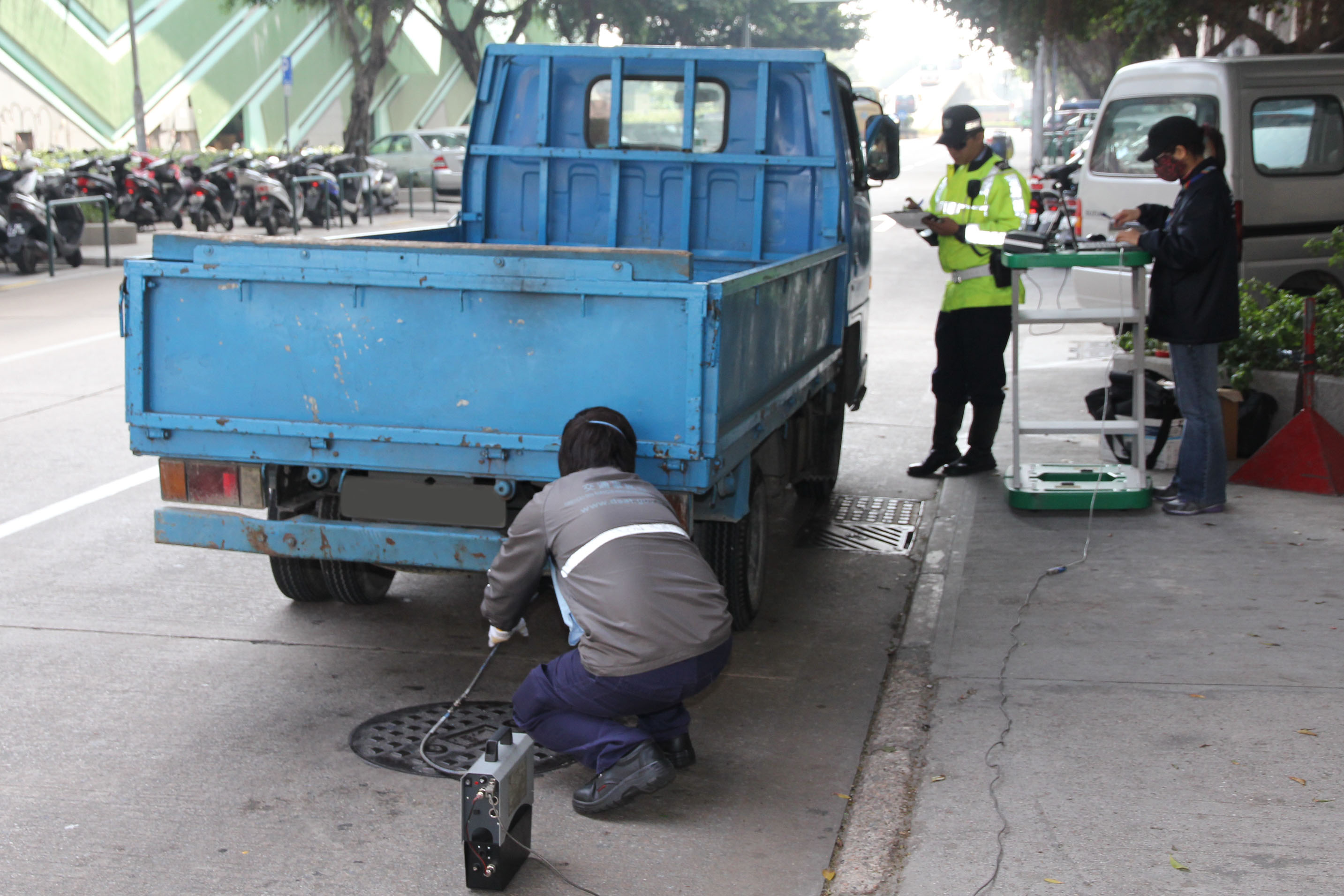 據現行法例相關規定,工作小組在街道上抽檢柴油車輛廢氣的排放量時,倘發現被檢查的車輛的廢氣排放量超過法定最大容許值60個煙霧單位,警方會即時向車主發出罰單,罰款為澳門幣600元,並會強制相關車輛再進行特別檢驗,有關費用為500元,車主若逾期申請特別檢驗,則需多繳交500元的附加費。