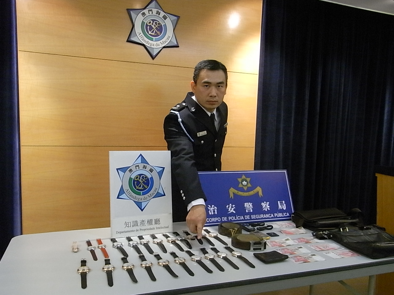 澳門海關與治安警察局採取聯合行動,一天內共同偵破兩宗街頭售賣冒牌侵權物品詐騙案。於二月二十七日,在皇朝區及新口岸區街頭,分別發現兩名男子不斷向途人兜售手錶,被治安警截查時,發現其隨身斜揹袋內,藏有一批涉嫌侵權偽冒手錶及手提電話,故轉交海關知識產權廳跟進調查,該批物品經初步核實均為「山寨」貨品,兩案分別移送檢察院偵辦。