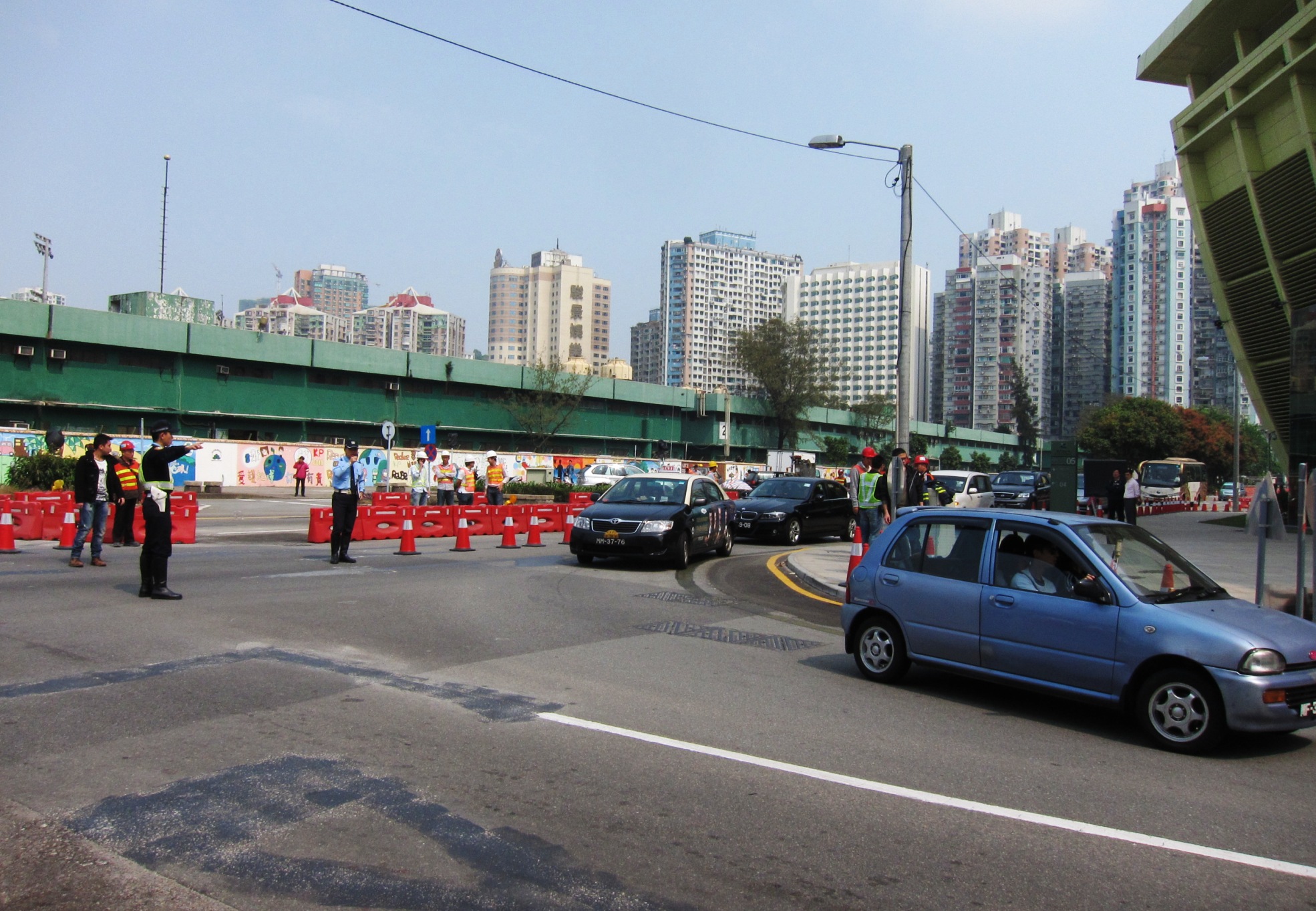 運輸基建辦公室聯同交通事務局人員到場視察運動場道試行圍封及相關臨時交通措施實施情況,是次改動主要包括圍封近賽馬會一側的運動場道;奧林匹克游泳館圓形地至體育路一段的運動場道改作單向行車,只供車輛往運動場圓形地方向行駛;開通由學院路右轉望德聖母灣大馬路的新闢道路,方便往澳門方向車輛行駛。配合有關安排,介乎體育路與排角路之間學院路實施臨時單一方向行車,即車輛僅可經運動場道駛入體育路及學院路,同時,介乎奧林匹克圓形地與學院路的一段排角路實施封閉交通(特許車輛除外)。而“運動場道”巴士站則往運動場圓形地方向遷移約50米,所停靠之巴士路線維持不變。運輸基建辦公室及交通事務局會在實施初期密切監察交通狀況、施工環境及相關配套設施,適時作出優化。倘試圍封情況理想,可望於下周中旬陸續架設圍板。