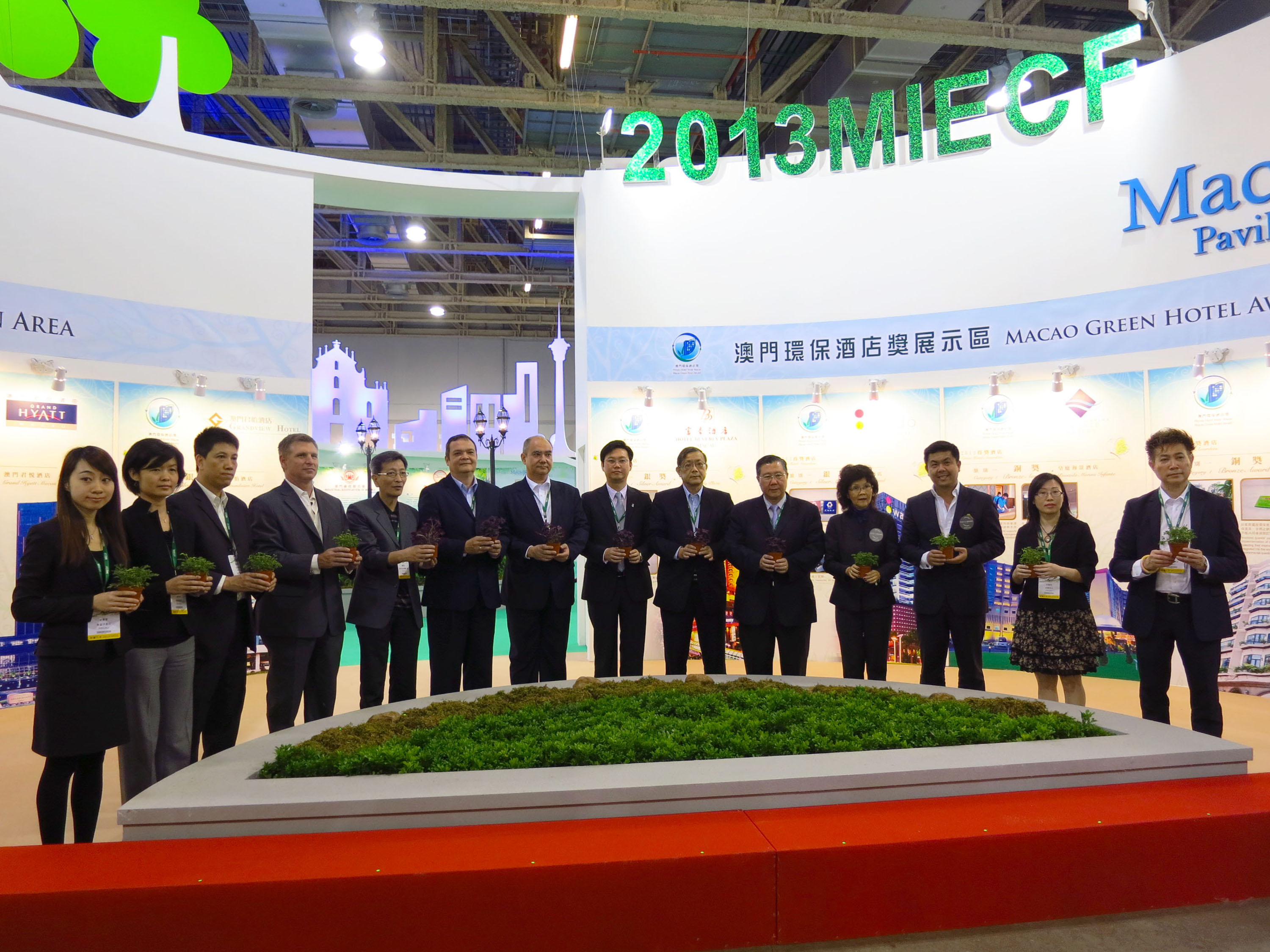 環境保護局藉着「2013年澳門國際環保合作發展論壇及展覽」(2013MIECF)的國際性平台,首次在澳門館上設立「澳門環保酒店獎」展示區,向來自世界各地的環保專業人員和公眾介紹「澳門環保酒店獎」的概念、發展歷程和取得成效,同時亦展示了2012年度得獎酒店的主要環保特色,並於今日(3月21日)於 2013MIECF澳門館澳門環保酒店獎展示區進行了剪綵儀式,由環境保護局張紹基局長、旅遊局白文浩代局長、澳門酒店旅業商會陳志杰會長、澳門酒店協會陶比德總監、澳門生產力暨科技轉移中心孫家雄理事長以及澳門酒店旅業職工會盧啟祥理事長連同2012年度得獎酒店代表的嘉賓出席剪綵儀式。