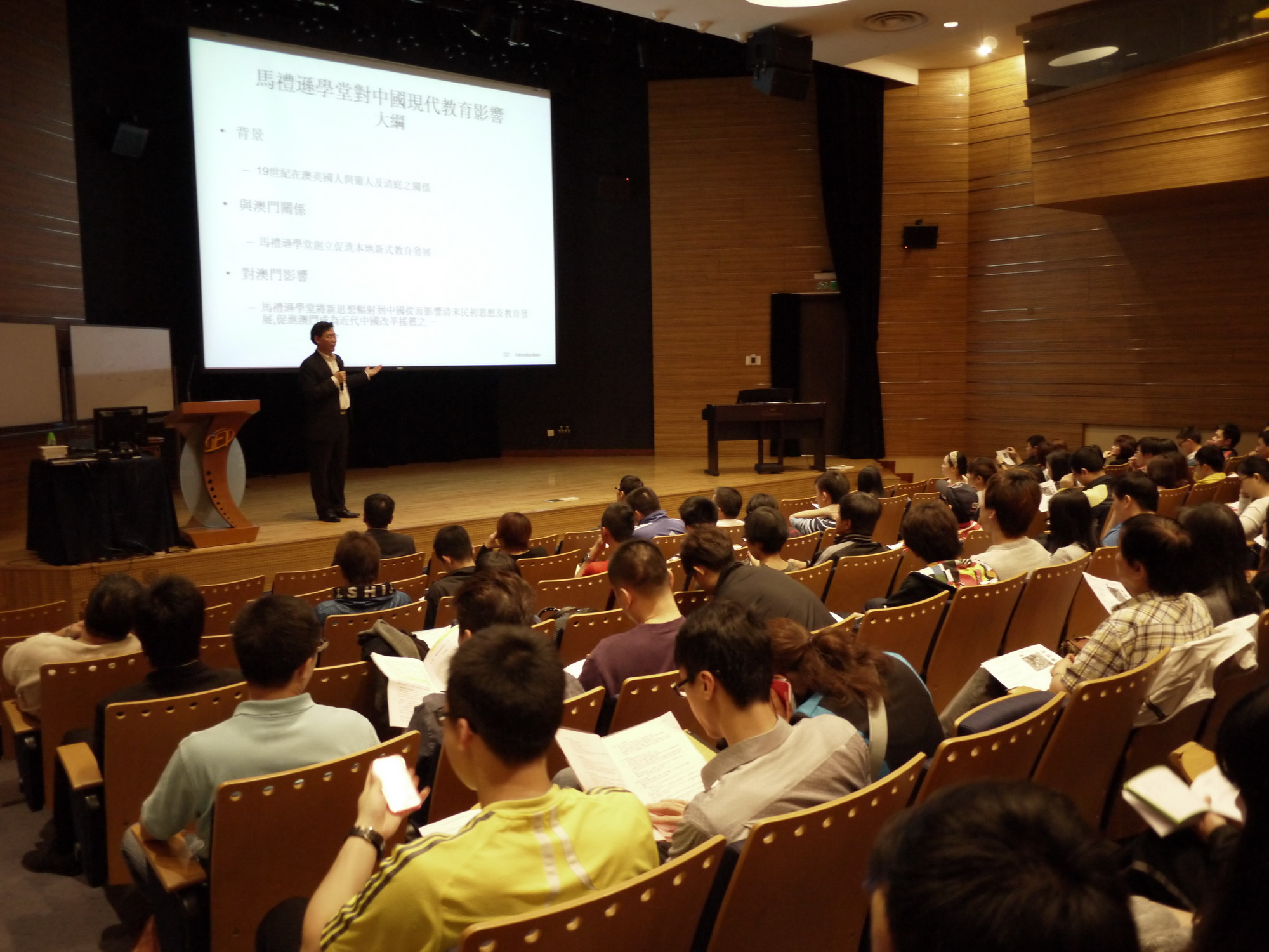 於3及4月舉行的【澳門文化旅遊系列】講座,分享其搜證和論點。主題分別是由趙虹女士主講的【看教堂論葡國政治變動對澳門教會的影響】及陳耀添先生主講的【馬禮遜學堂對中國現代教育影響】。兩場講座分別吸引了二百多名人士參加,學院深信透過分享、推廣和教育定可有助澳門多元產業發展,為構建澳門成為世界休閑中心作推手。